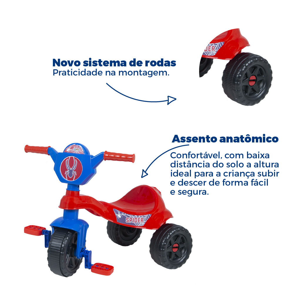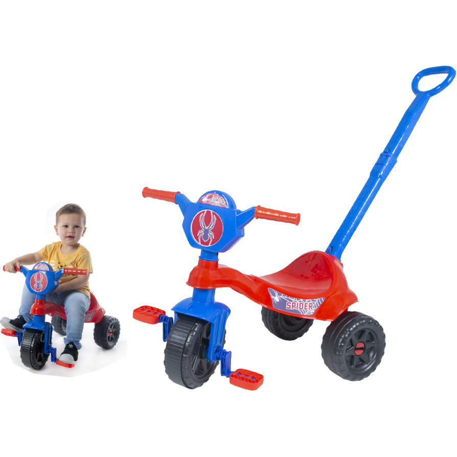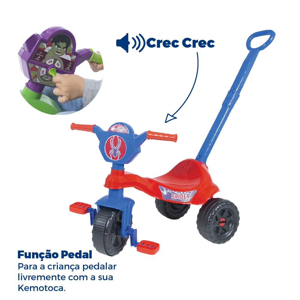 Motoca Triciclo Velotrol Aranha - Com Haste de Empurrar e Pedal -Certificado Inmetro - Motoka modelo Kemotoca