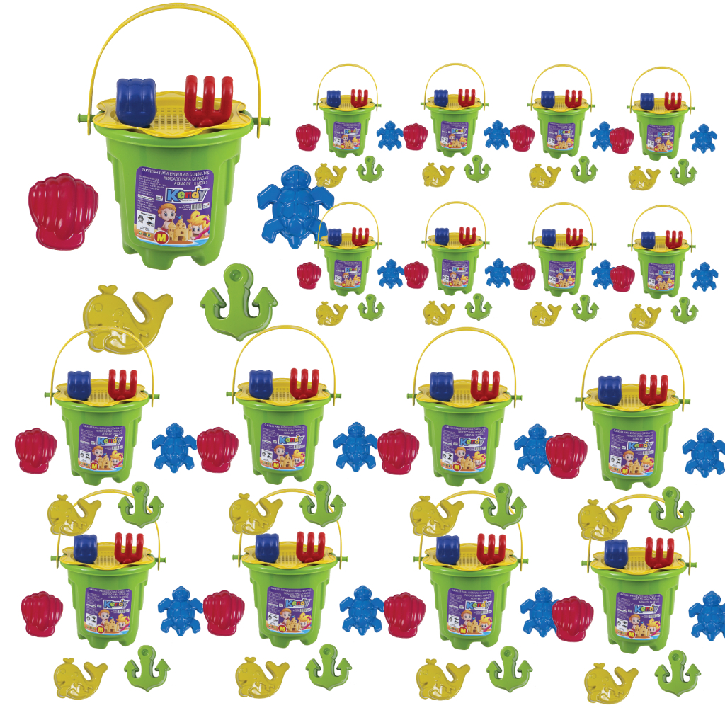 Kit 10 Baldes Praia - Cada unidade Contém 8 acessórios