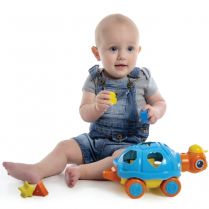 Tartaruga Brinquedo Educativo - Desenvolvimento Cognitivo Coordenação Motora Grande 28cm - Com 6 Peças Geométricas