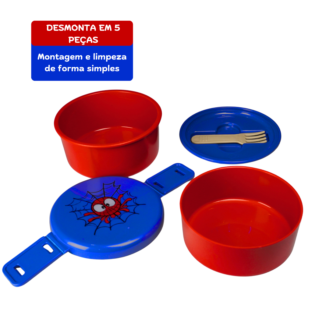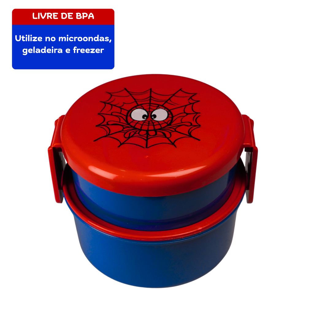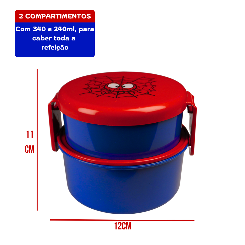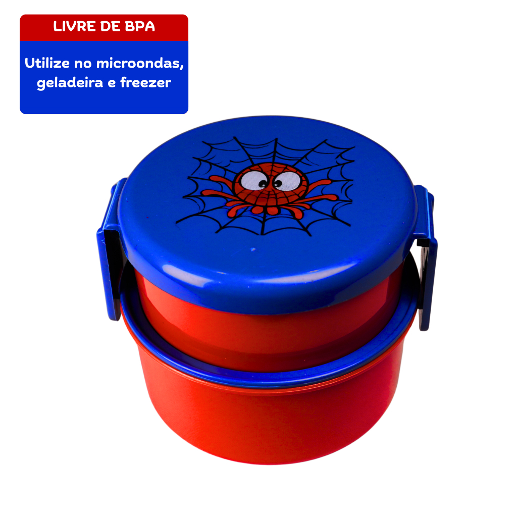 Marmita Infantil Dupla Aranha c/ Garfinho | Livre de BPA | 2 Compartimentos Empilháveis | QUEEN SHOP