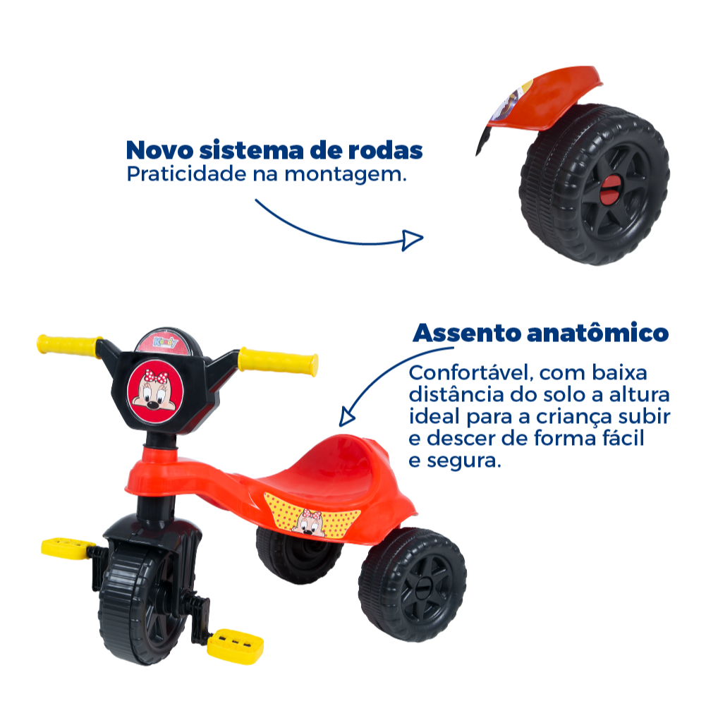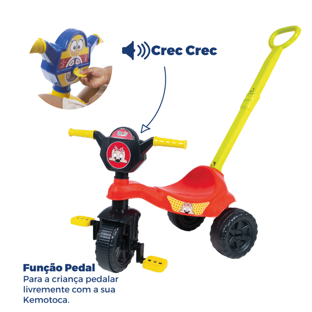 Triciclo Menina 2 a 5 Anos - Até 25kg - Haste de Empurrar +Pedais - Inmetro / Motoca Velotrol