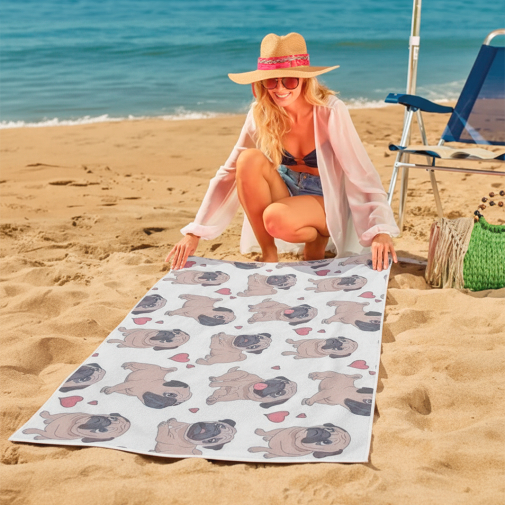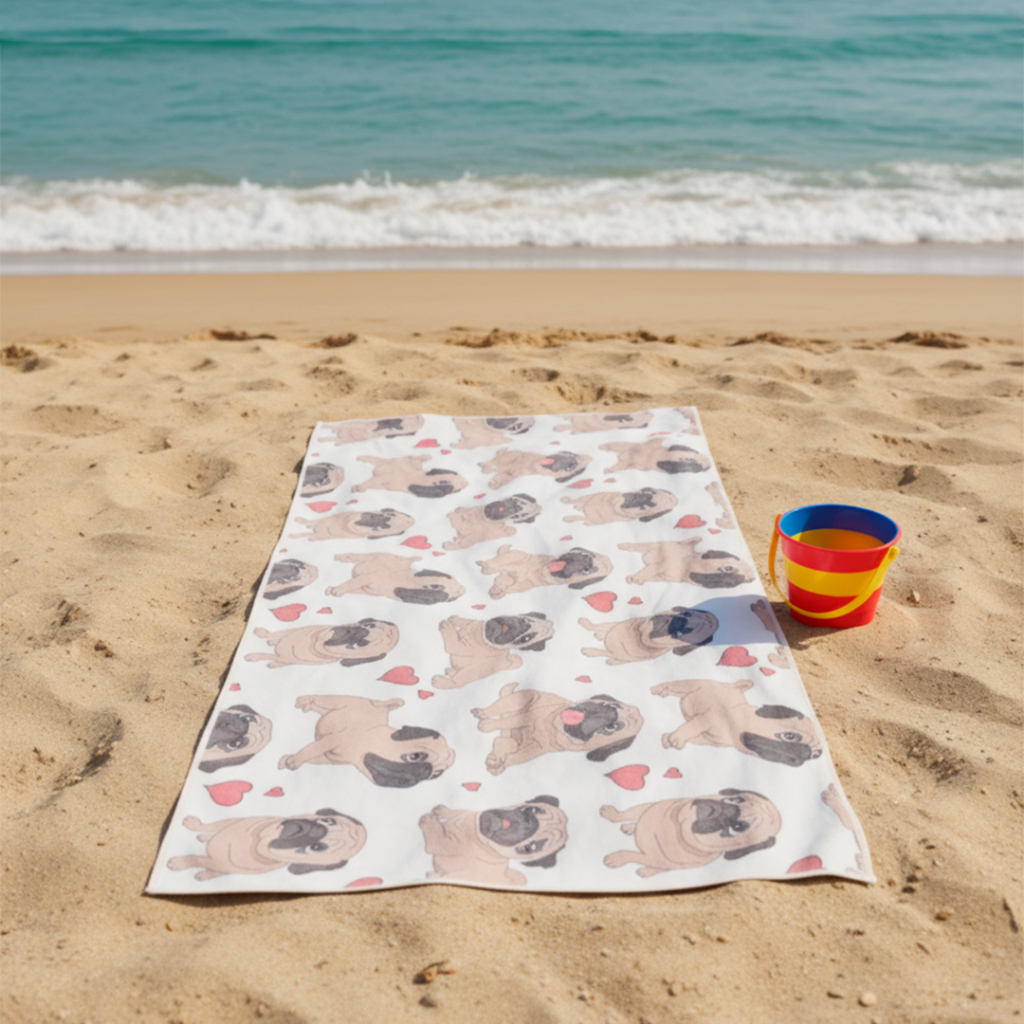 Toalha Dog Pug: Estampa HD, Poliéster e Algodão de Alta Qualidade - Design Exclusivo e Importado