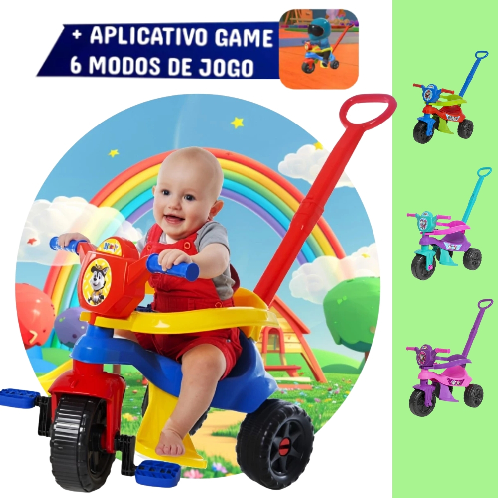 Triciclo + Game Aplicativo 3D 🚴♂️ - Crianças 1 a 3 anos – Motoca Velotrol Com Pedais, Empurrador - QUEEN SHOP