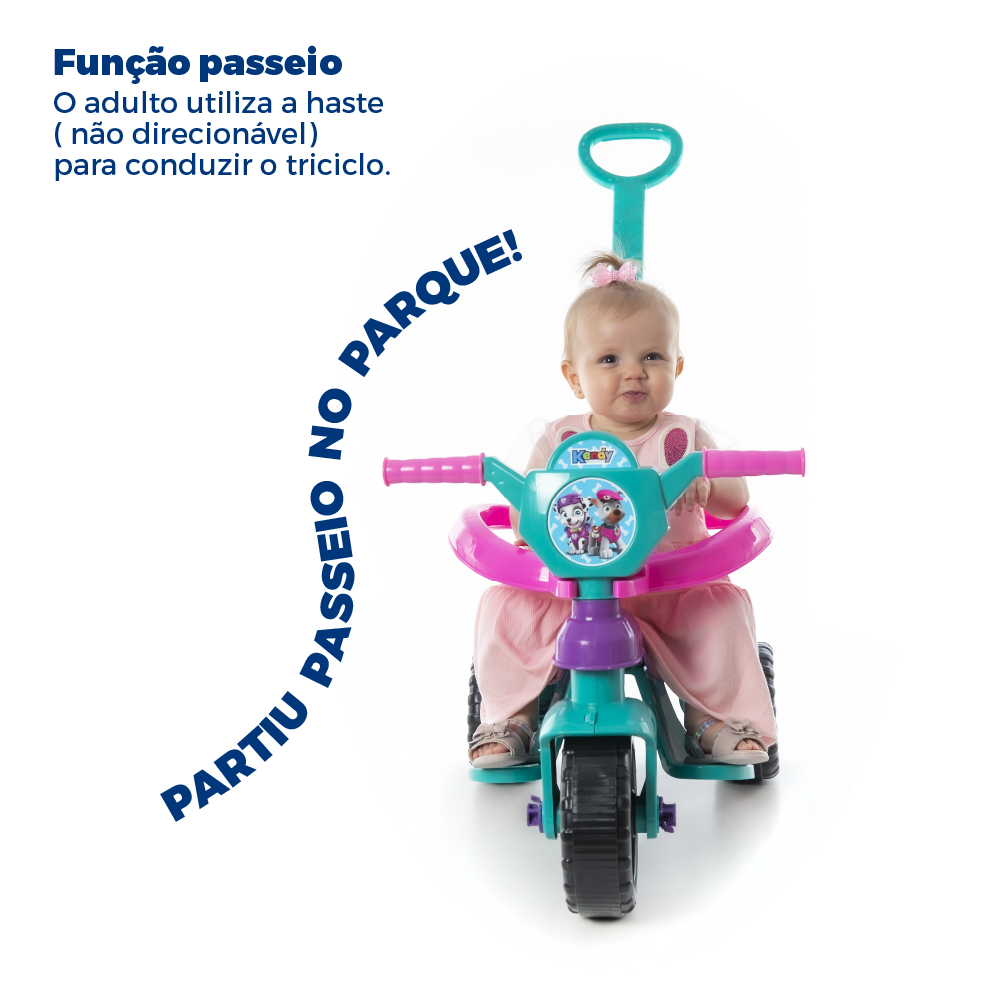 Triciclo Completo + Game Aplicativo 3D - C/ Pedal Empurrador e Protetor Velotrol Motoca Infantil