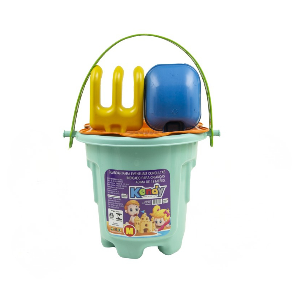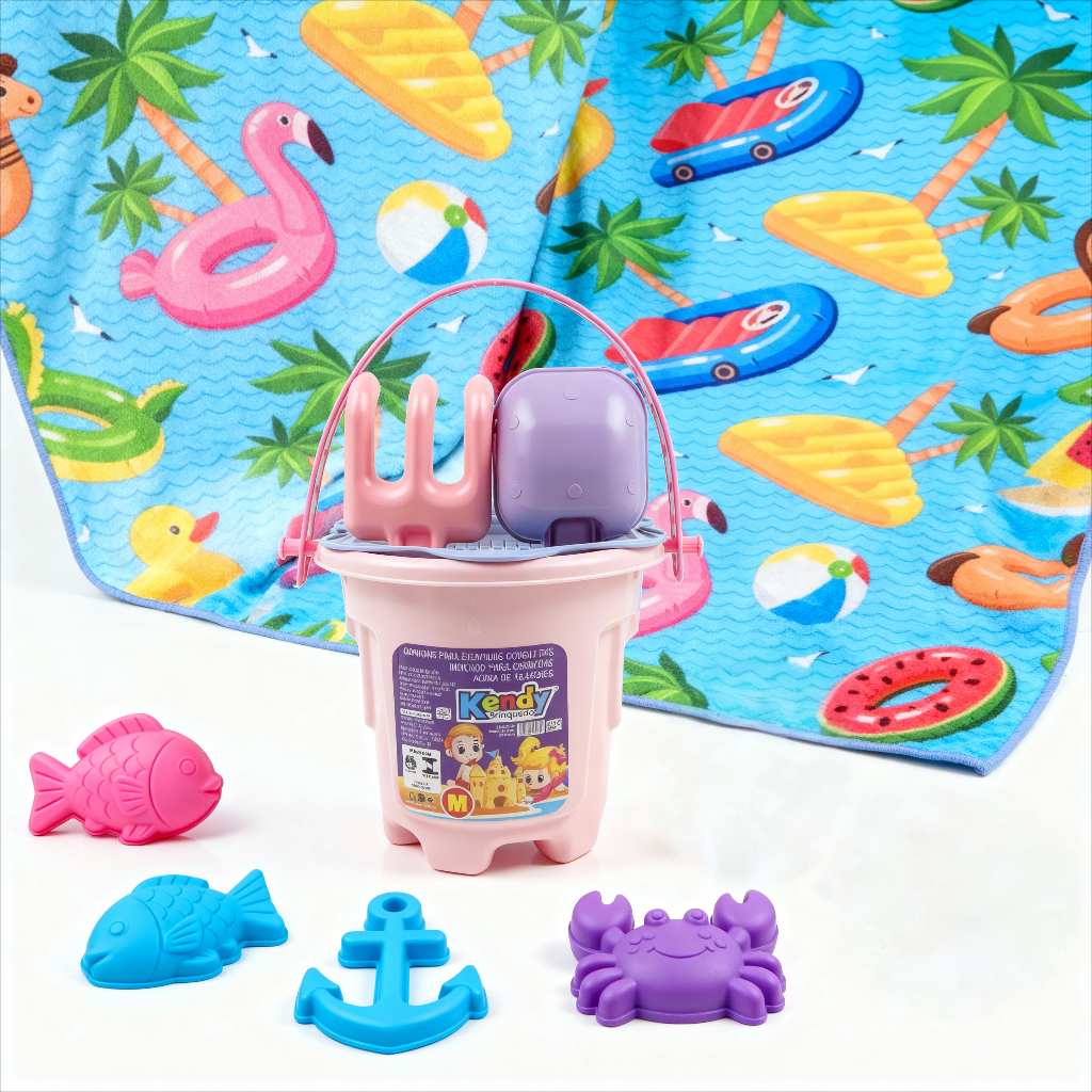 Kit Praia Infantil Balde + Toalha Tropical | Balde Império M +4 Forminhas | Toalha Estampa Modelo Importado | QUEEN SHOP