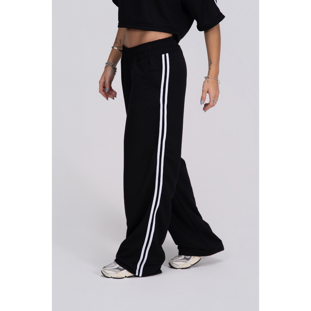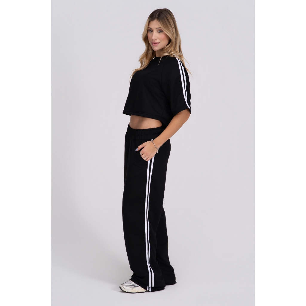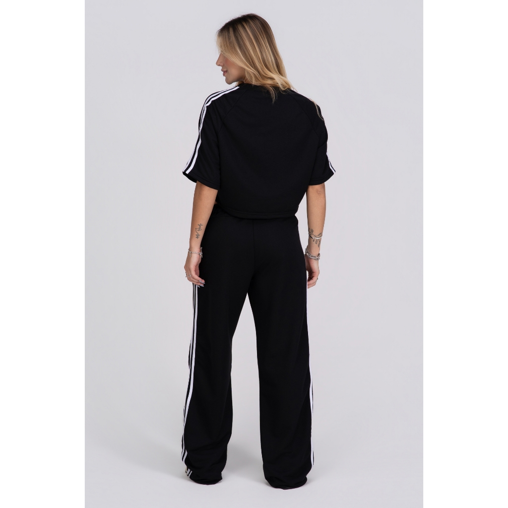 Calça Pantalona feminina listras laterais Confortável Academia Modelo Grande Básica Moletom