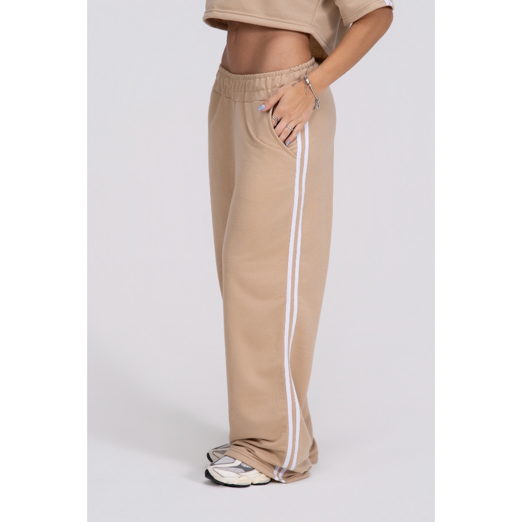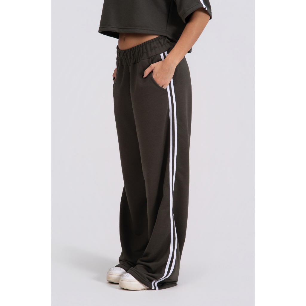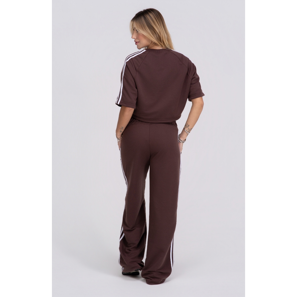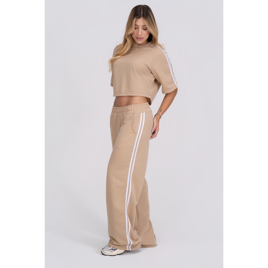 Calça Pantalona feminina listras laterais Confortável Academia Modelo Grande Básica Moletom