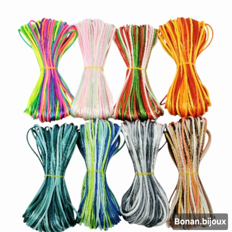 Cordão Fio de Cetim Rabo de Rato 1mm com 20 metros/10 cores - Fio de Seda - Cordonê - Enfeite para Tranças - Acessórios