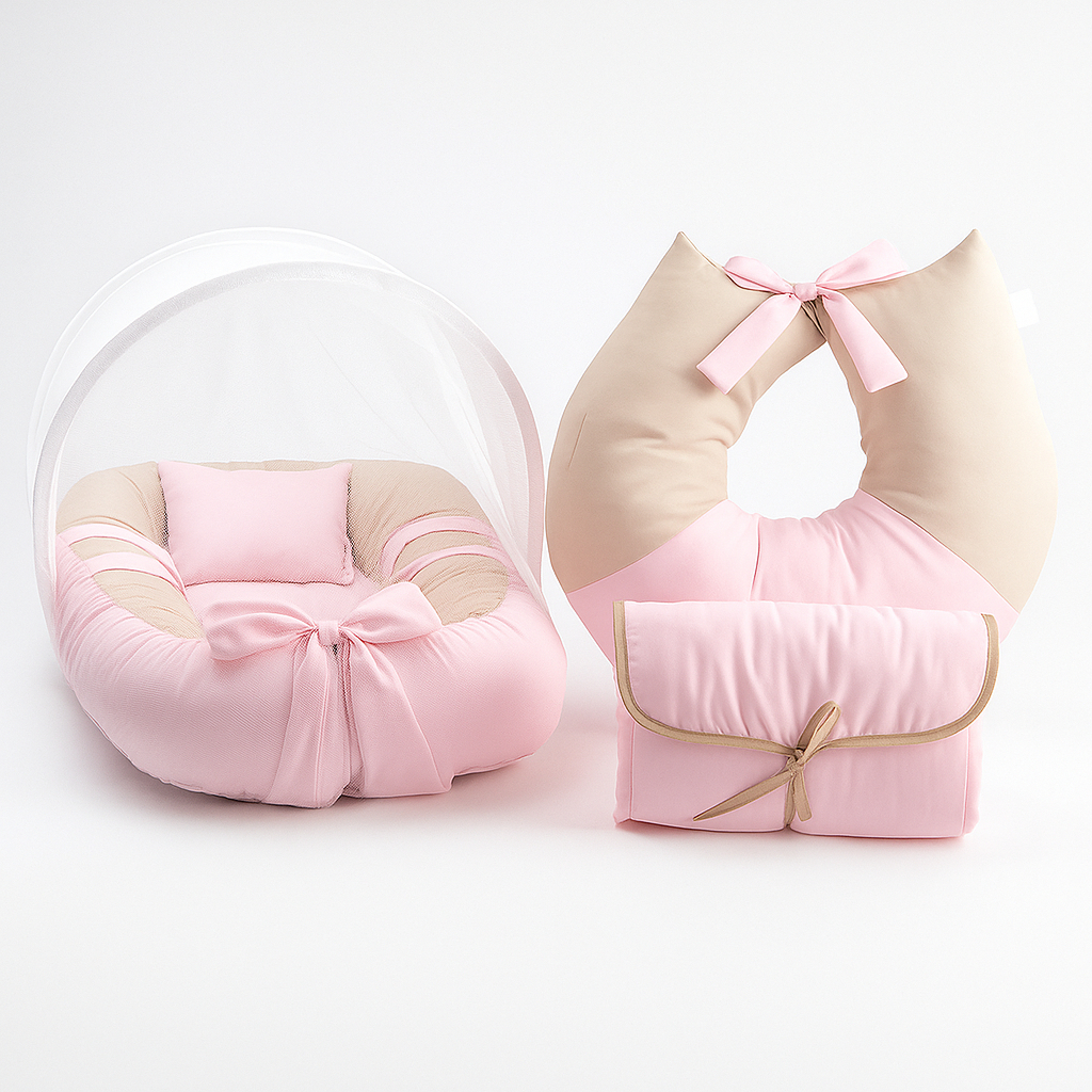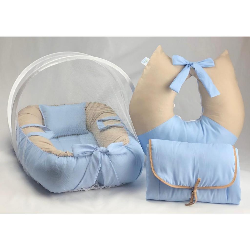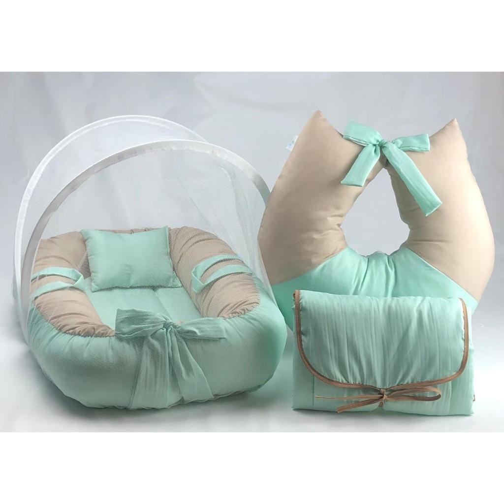 Kit Completo Ninho Redutor + Almofada Amamentação + Mosquiteiro + Trocador Portátil