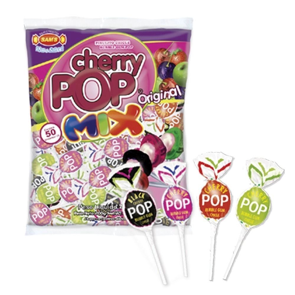 Pirulito Chicle Cherry Pop Mix 50un Sortido