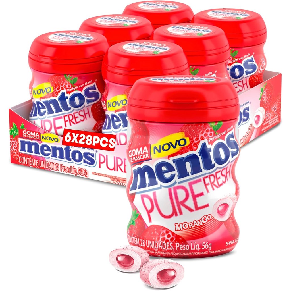 Chiclete Mentos Pure Morango Sem Açúcar Van Melle Com 28 Unidades De 56g