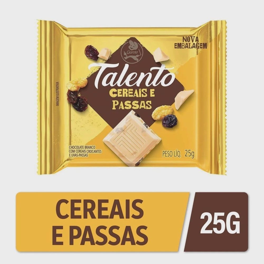 Chocolate Talento Mini Choc Branco E Passas 15 Unidades 25g