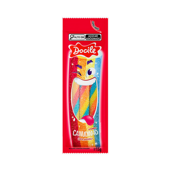 Bala Gelatina Canudinho Colorido Morango Cítrico Docile Com 12 Unidades De 15g