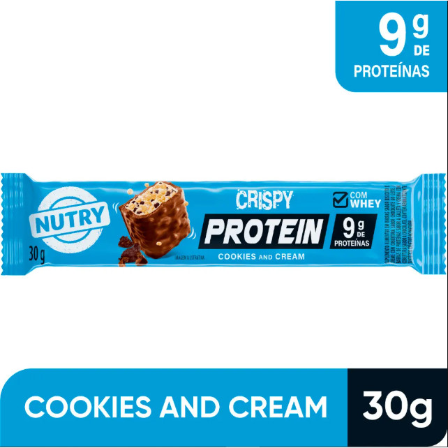 Kit Com 5 Barra Crispy 9g De Proteína Cookies Cream Nutry De 30g