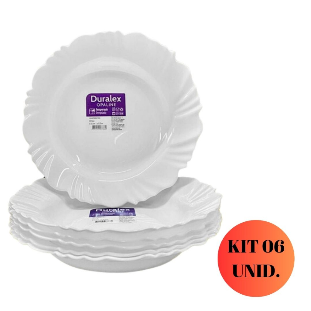 Jogo Kit 04/06/12 Pratos Fundo Duralex Pétala Branco Vidro Resistente Nadir Figueiredo Almoço Jantar