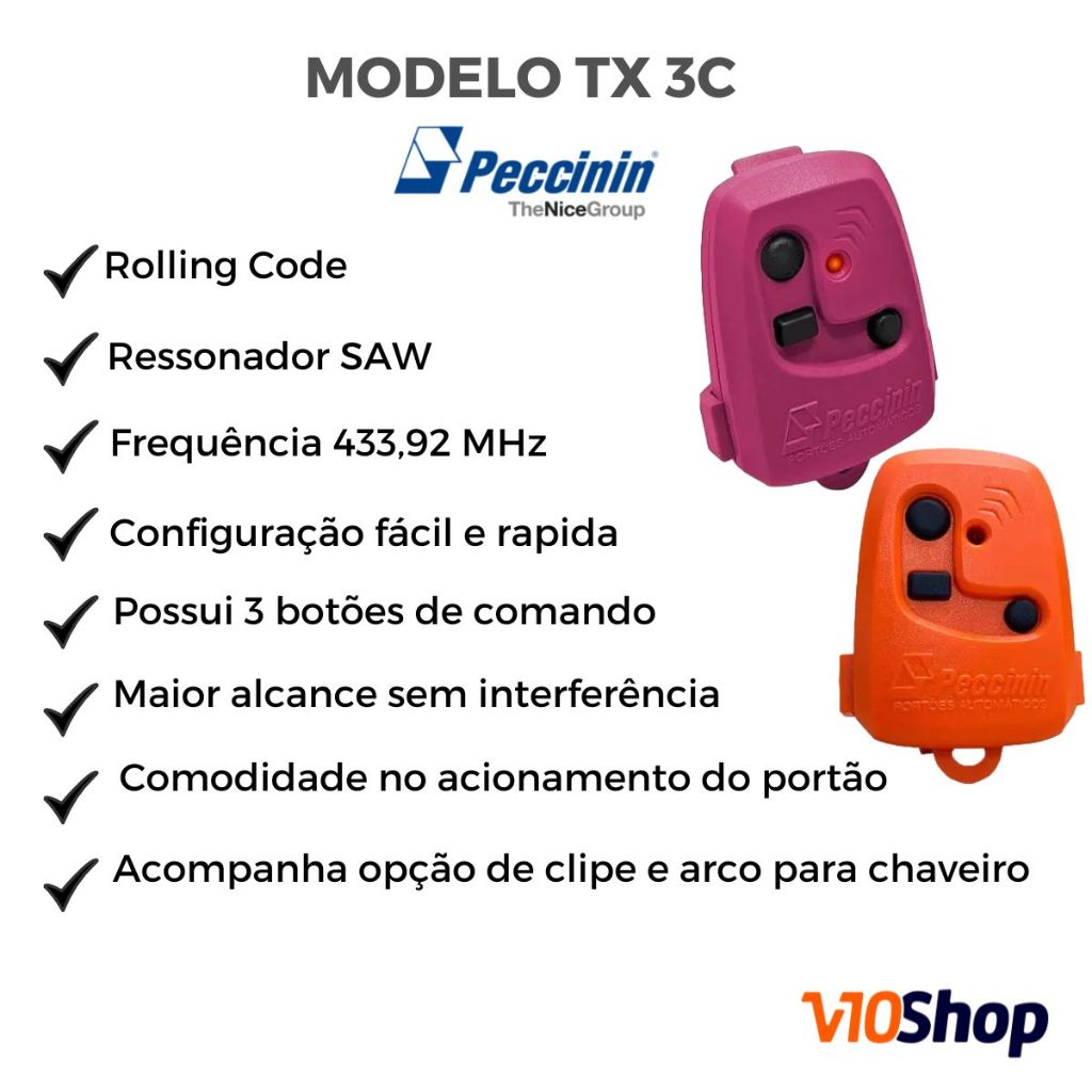 Kit 2 Controle para Portão Tx 3c Preto Peccinin Nice Linear 433 Mhz - V10 Shop