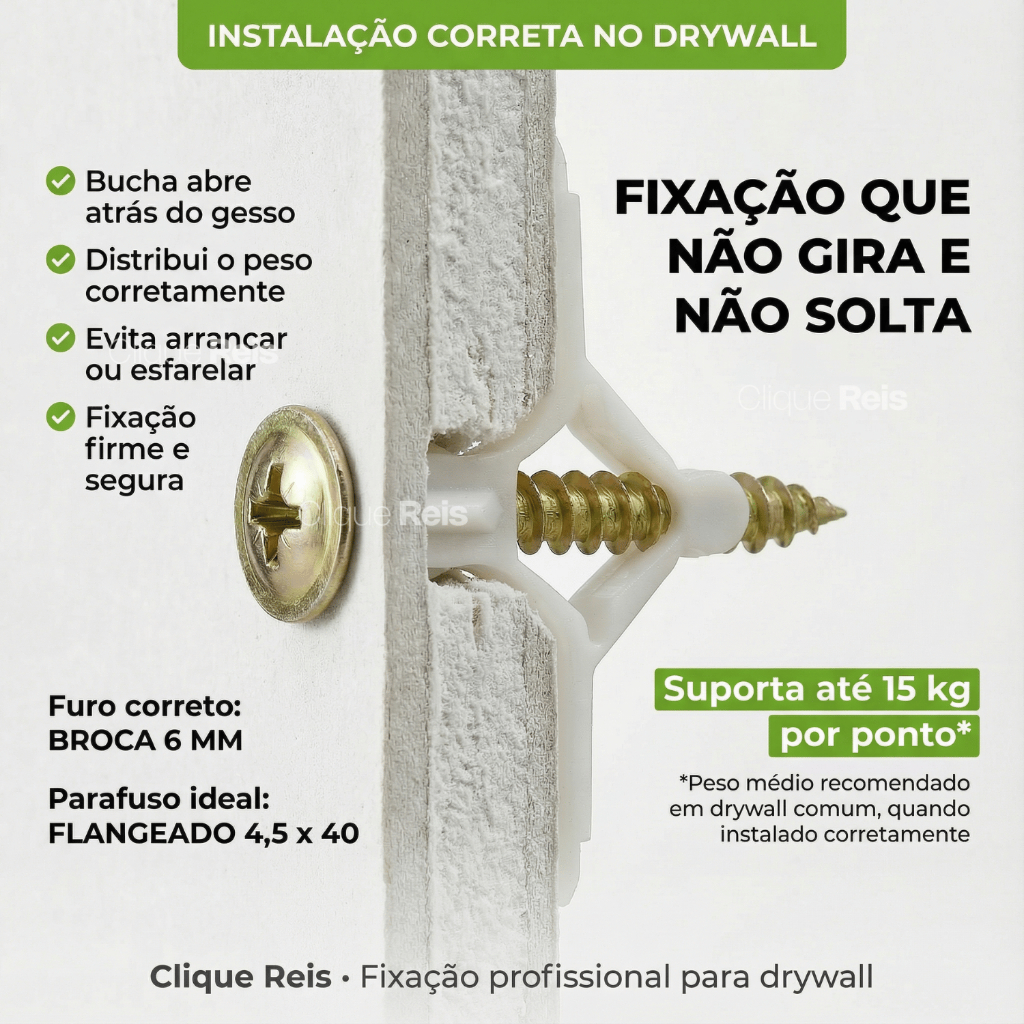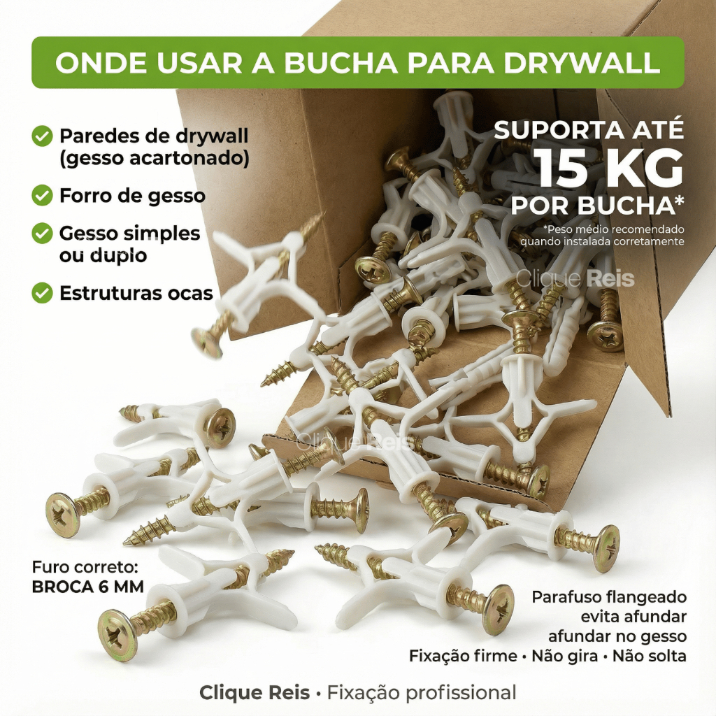 PARAFUSO E BUCHA PARA DRYWALL GESSO KIT PHILLIPS FLANGEADO BUCHA BORBOLETA 4,5X40