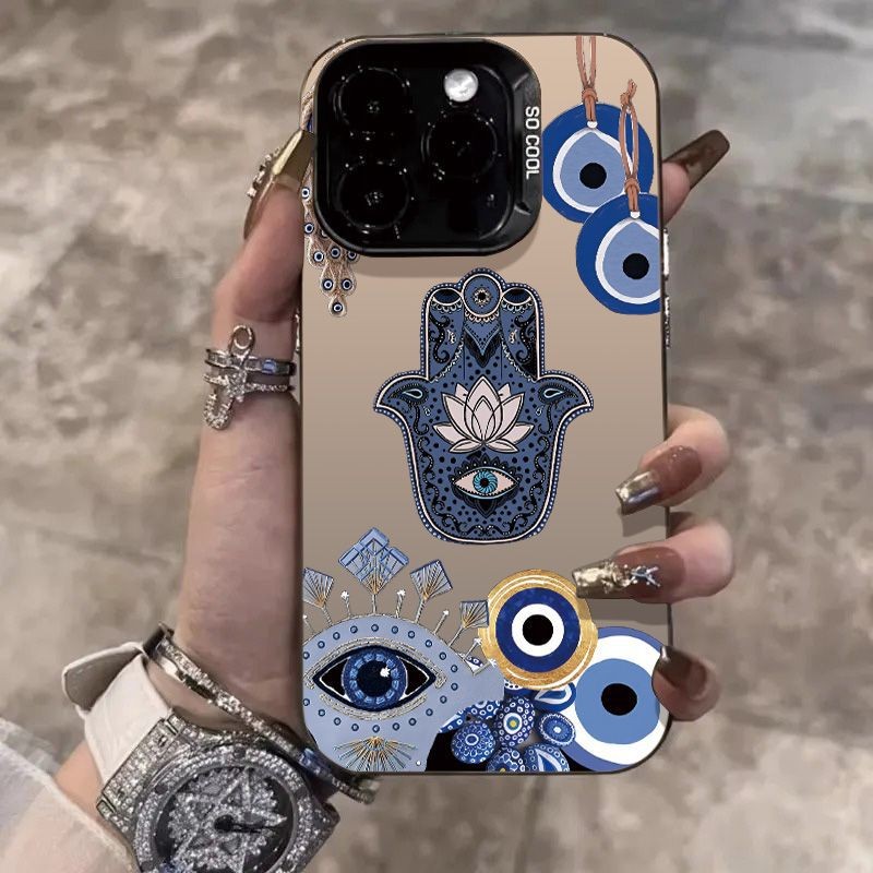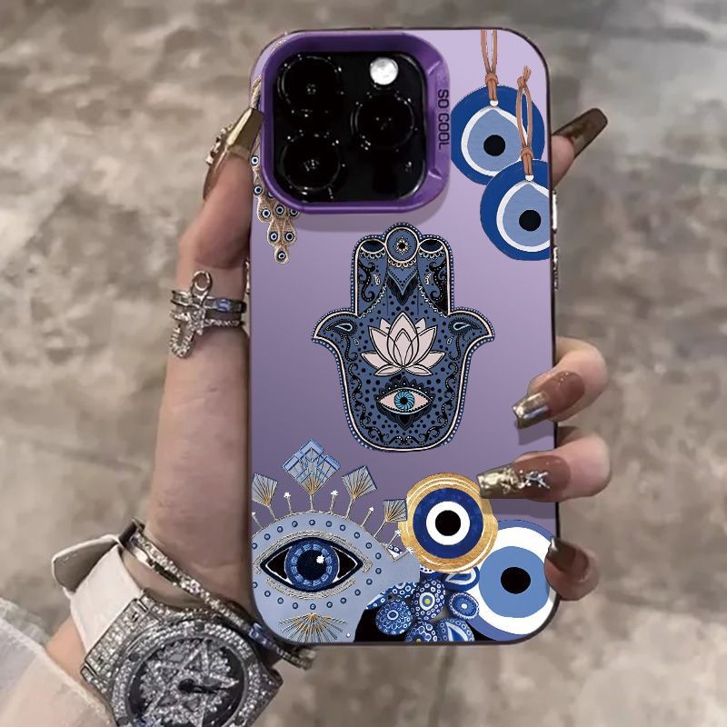 Capinha iphone 17 17Pro 17ProMax Air 11/12/13/14/15/16 Pro max,Capa de prateada colorida,olho grego