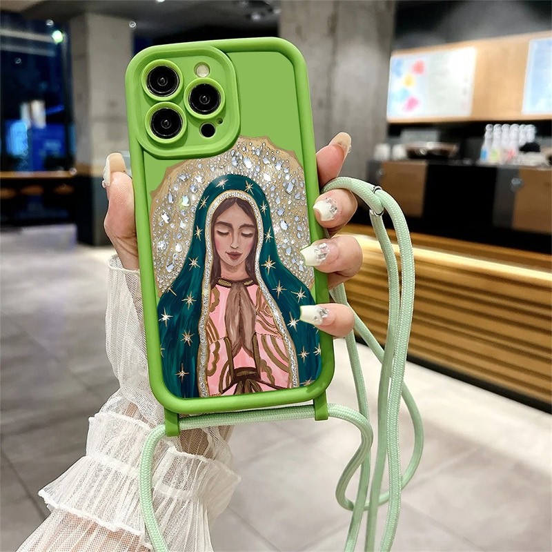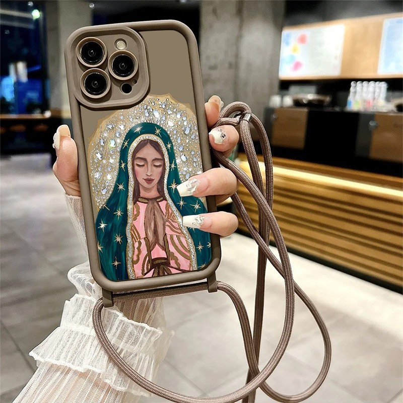 Virgem Maria, capa de TPU com cordão para iPhone 11 16 15 14 13 12 Pro Max XS XR X