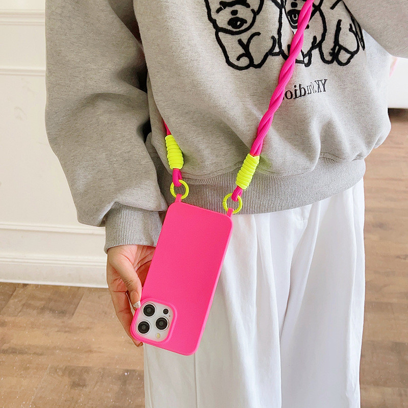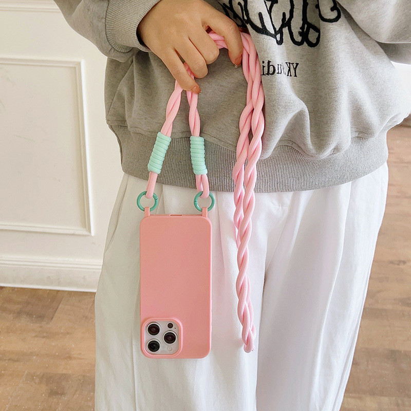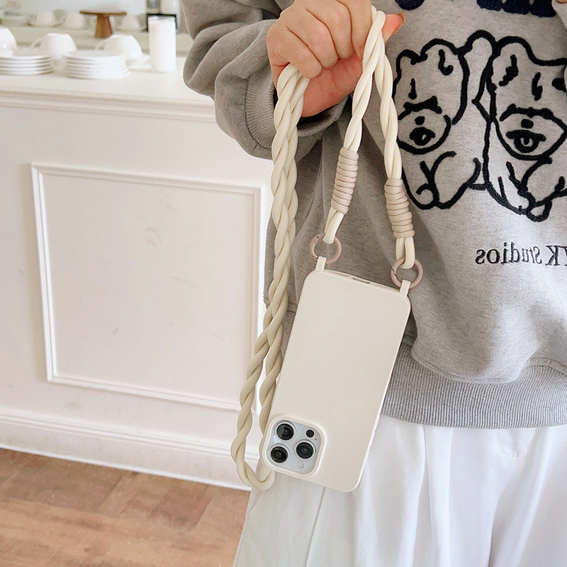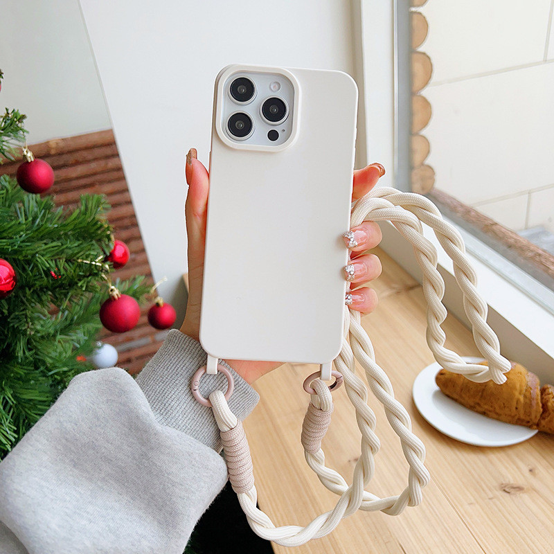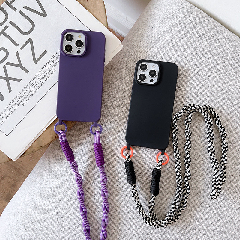 Cor pura Capa protetora Com cordão transversal,Capinha iphone 11/12/13/14/15/16 Pro max,anti impacto