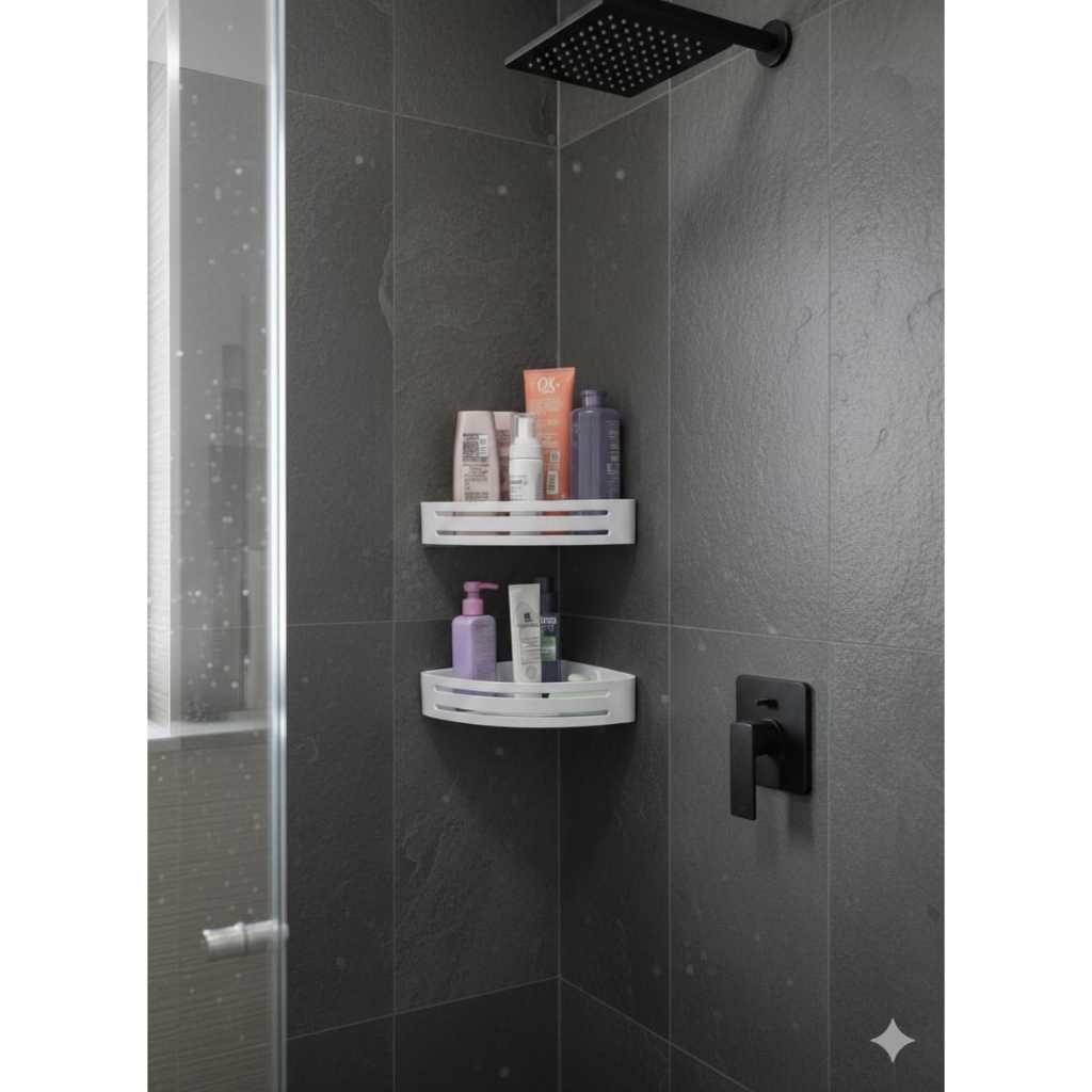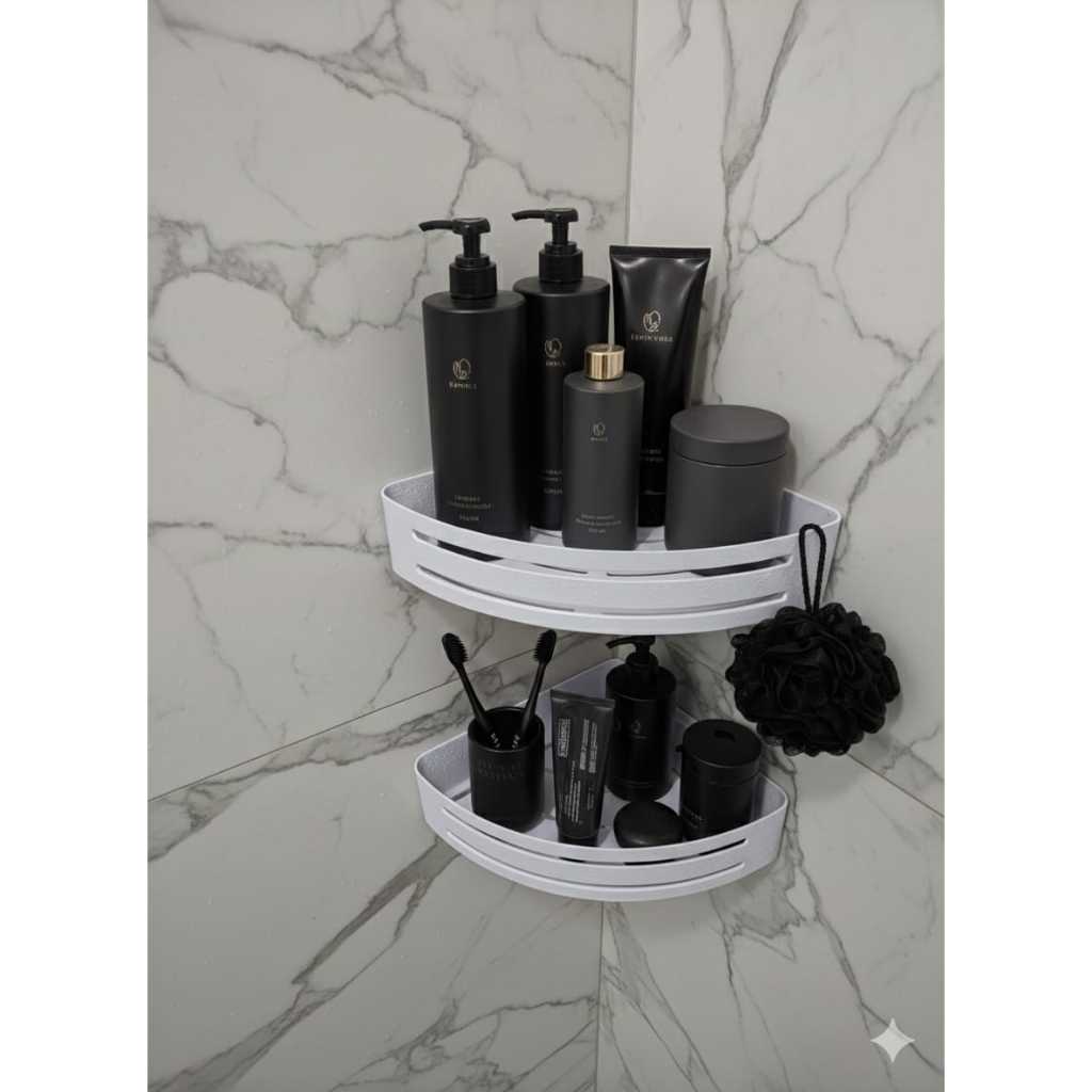 Kit 2 Suportes Porta Shampoo Para Banheiro De Canto C/ Adesivo