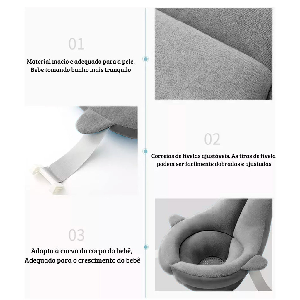 Almofada de Banho Cinza Ergonômica - Kababy