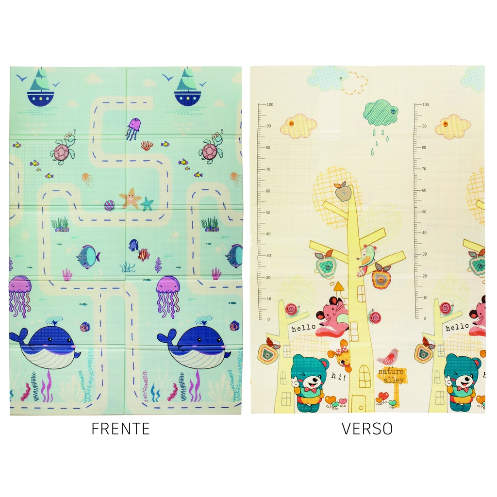 Tapete Infantil De Atividades 2 em 1 Emborrachado Dobrável Macio Para Bebê Tatame Dupla Face 180 x 120 x 10mm - Kababy