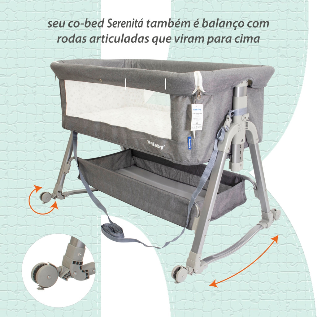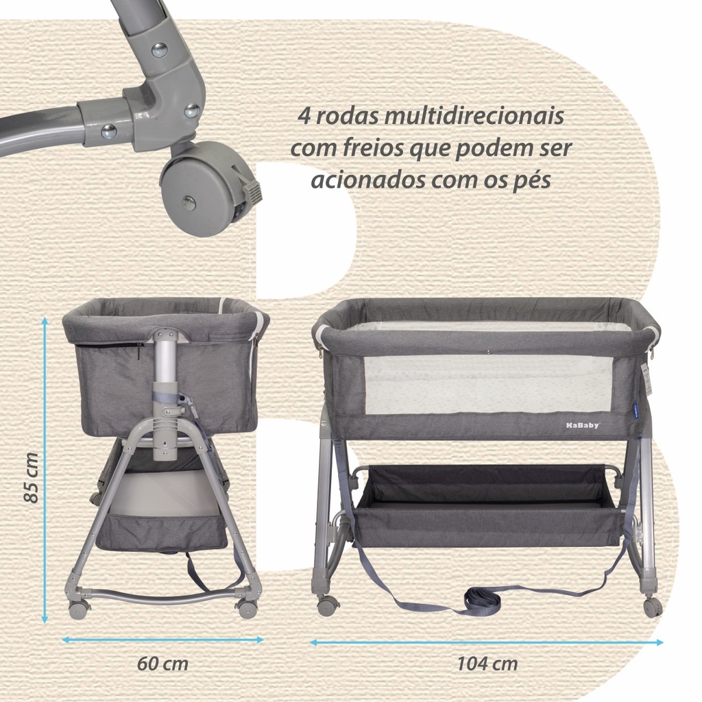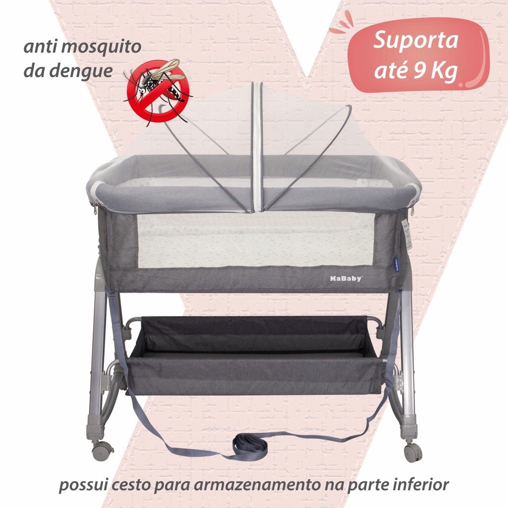 Berço Portátil Moises Co-bed Com Balanço Mosquiteiro e Cesto Cinza - Kababy