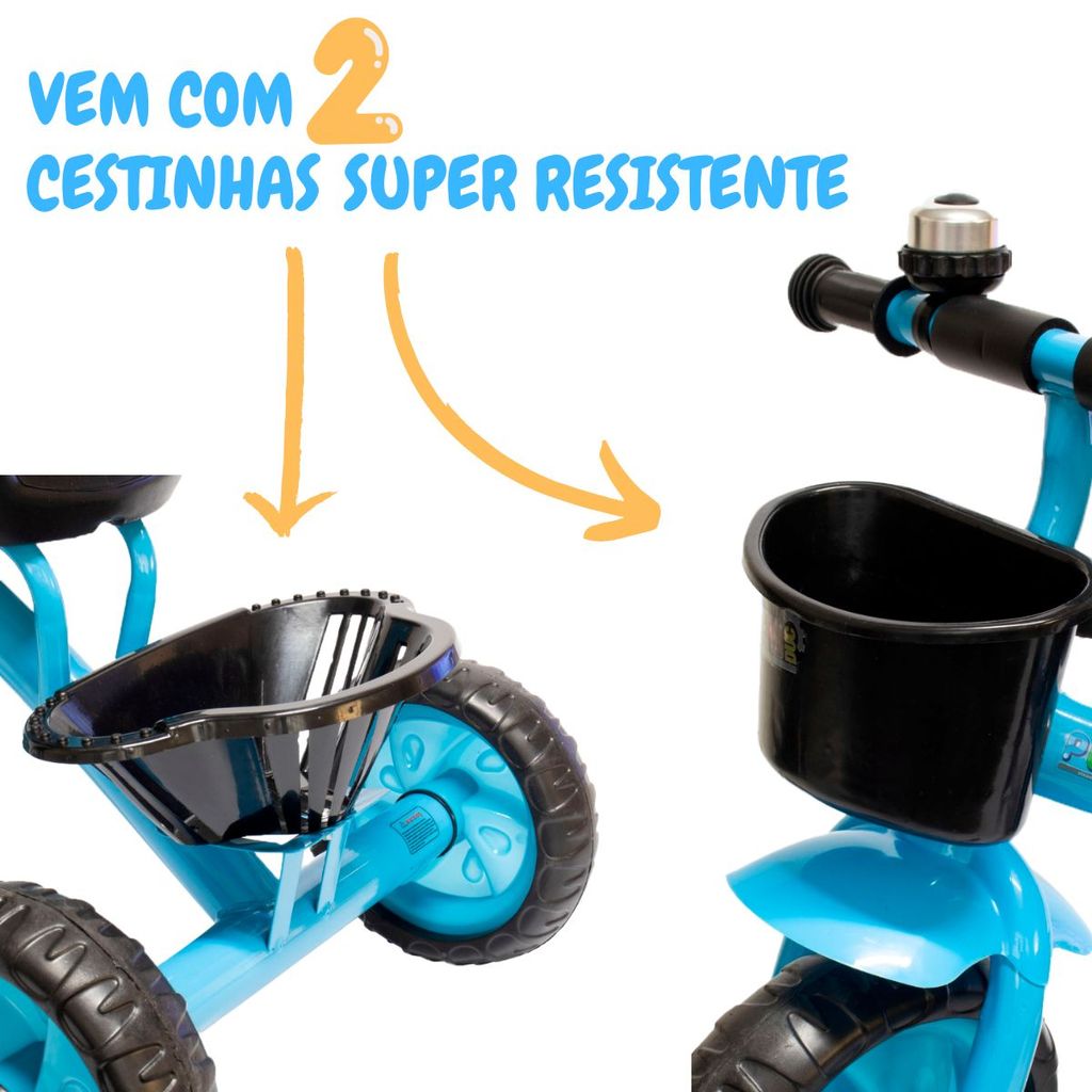 Triciclo Infantil Azul 3 Rodas Motoca Com Cesta e Buzina - PlayDuc