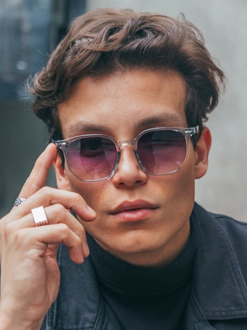Óculos de Sol Tulum Cinza Transparente Degradê Hexagonal Premium Vintage uv400 Feminino Masculino