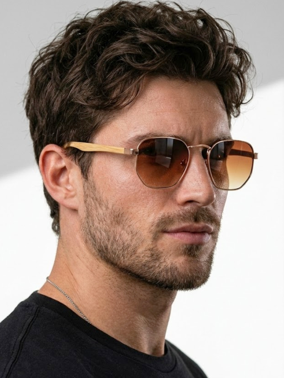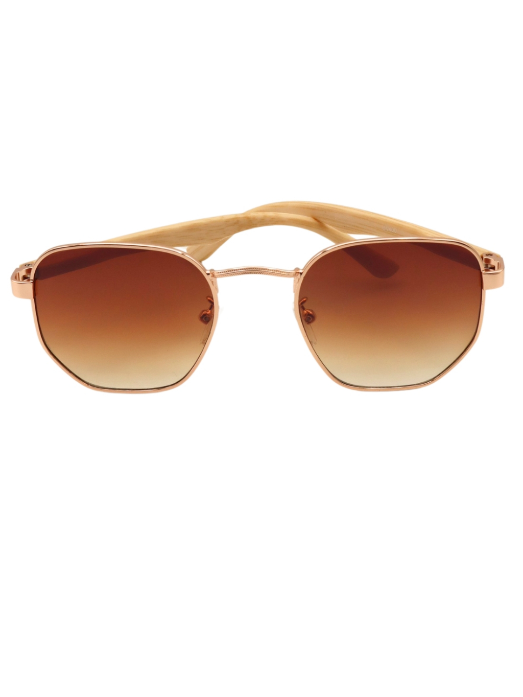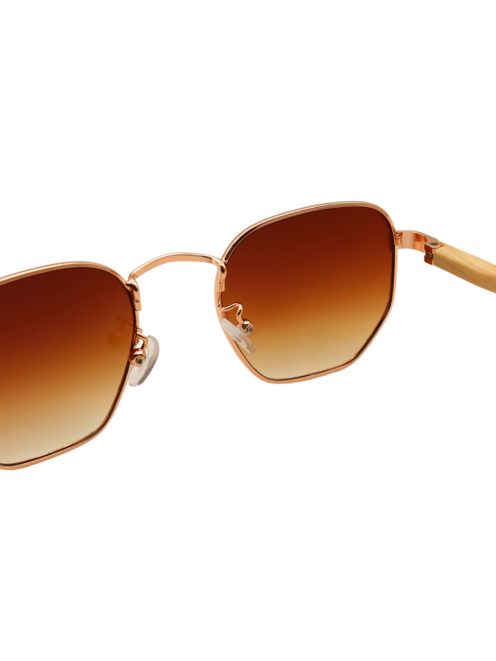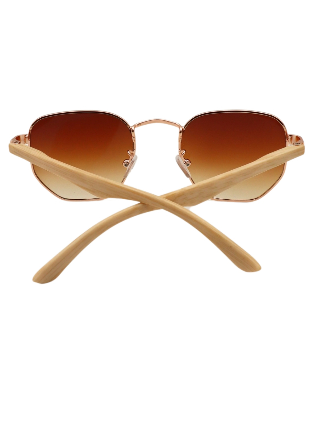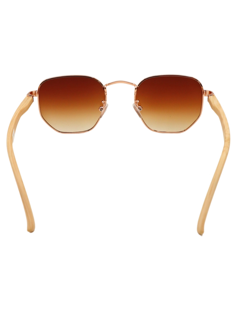 Óculos de Sol Hexagonal Marrom Degrade Premium Bambu Classico Tendencia uv400 Masculino Feminino