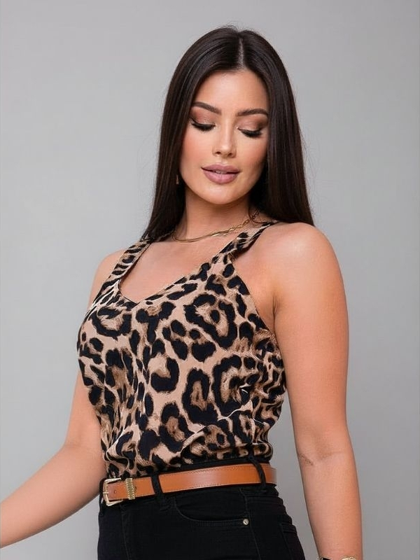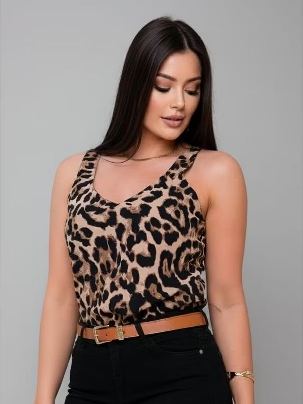 Regata Feminina Alça Larga Onça Tecido Duna P, M, G e GG