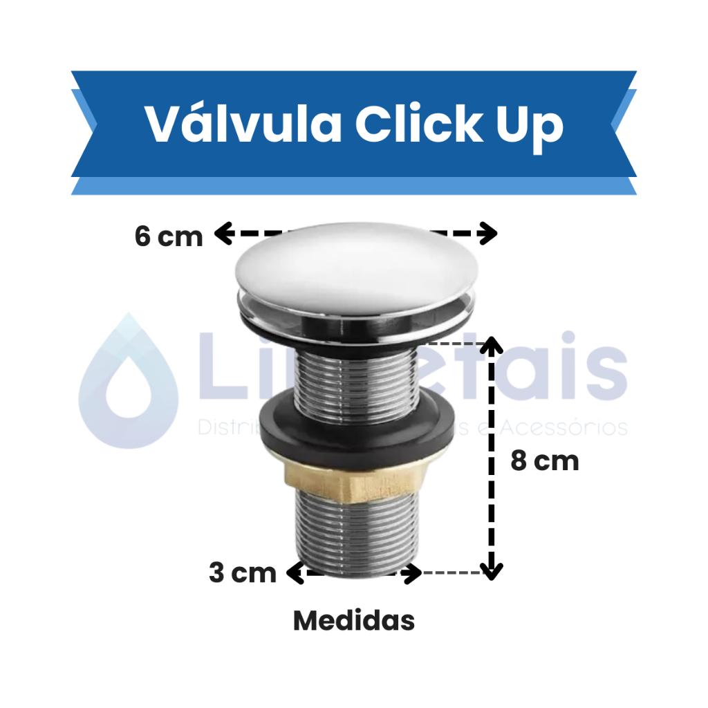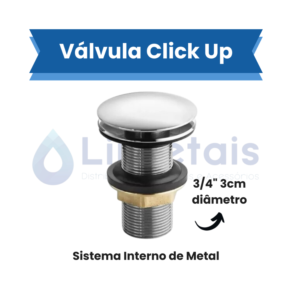 Válvula Click Up Luxo Inteligente Inox Lavatório Cuba Banheiro 7/8