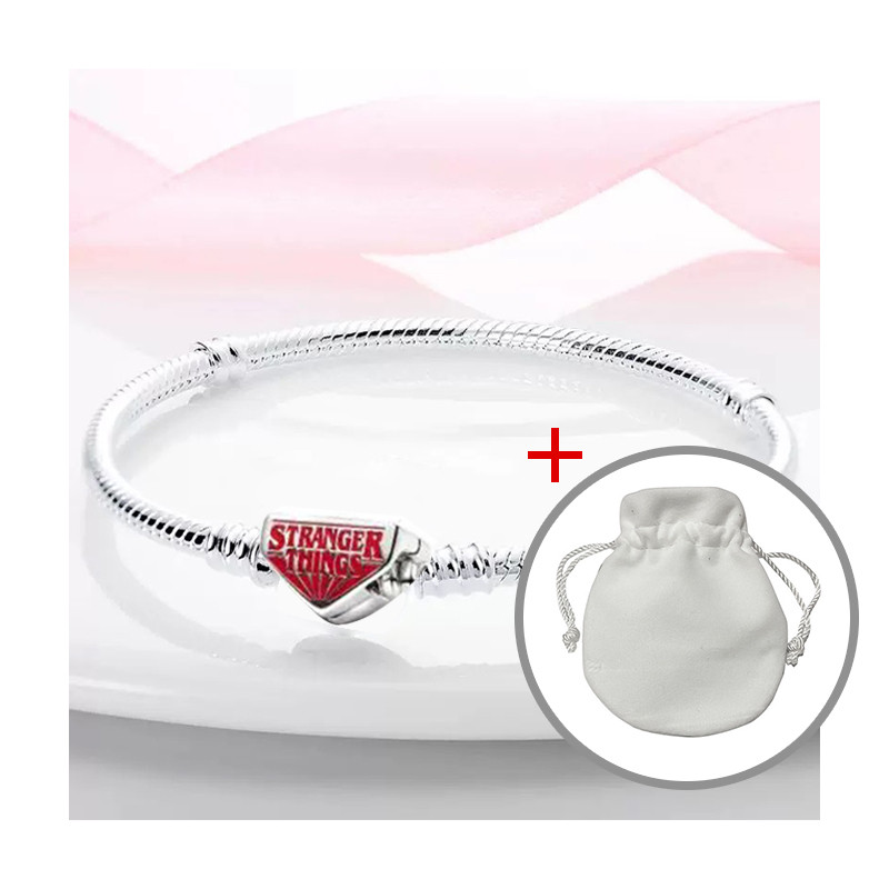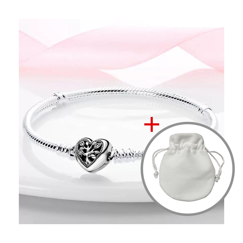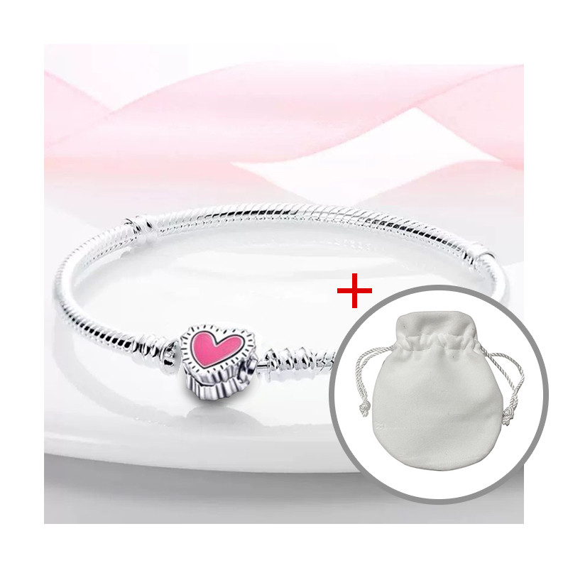 Máscara De Coração Pulseira DIY S925 Banhada A Prata + Bolsa De Veludo
