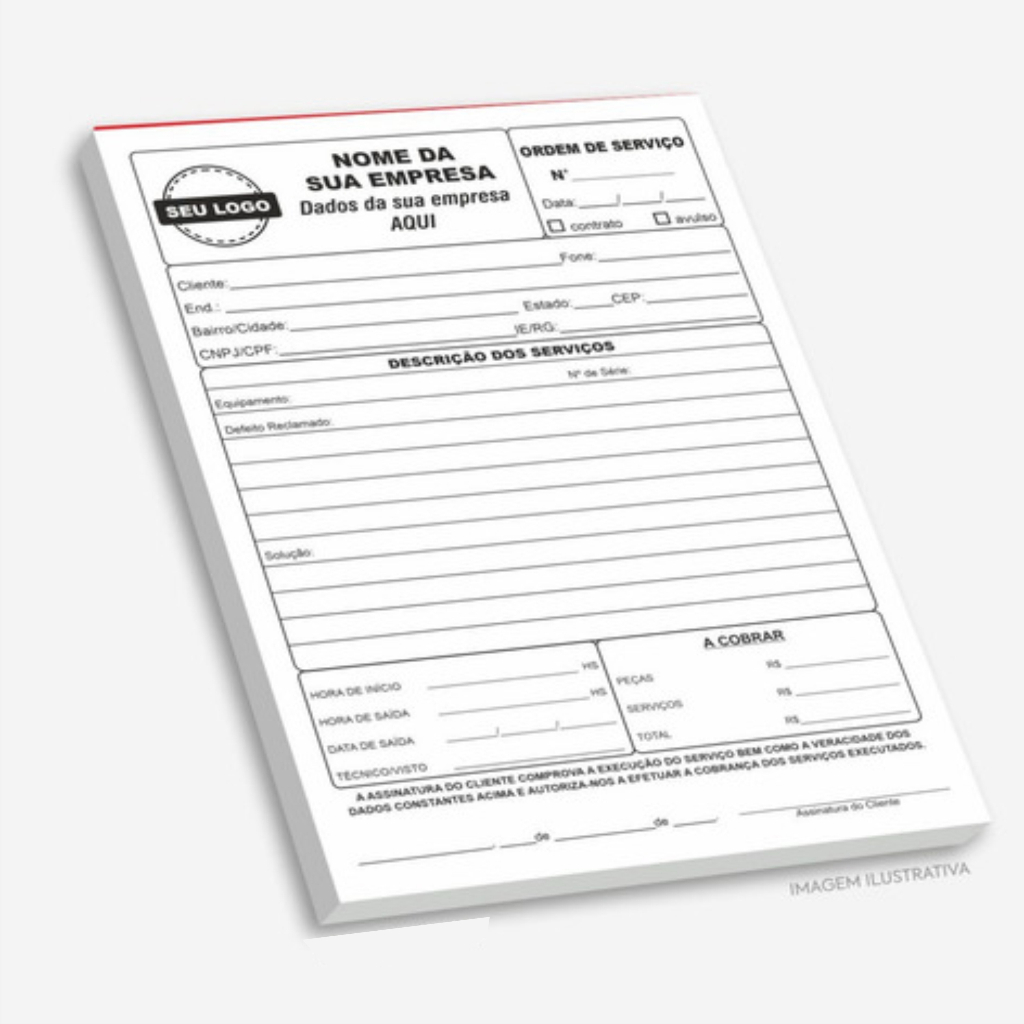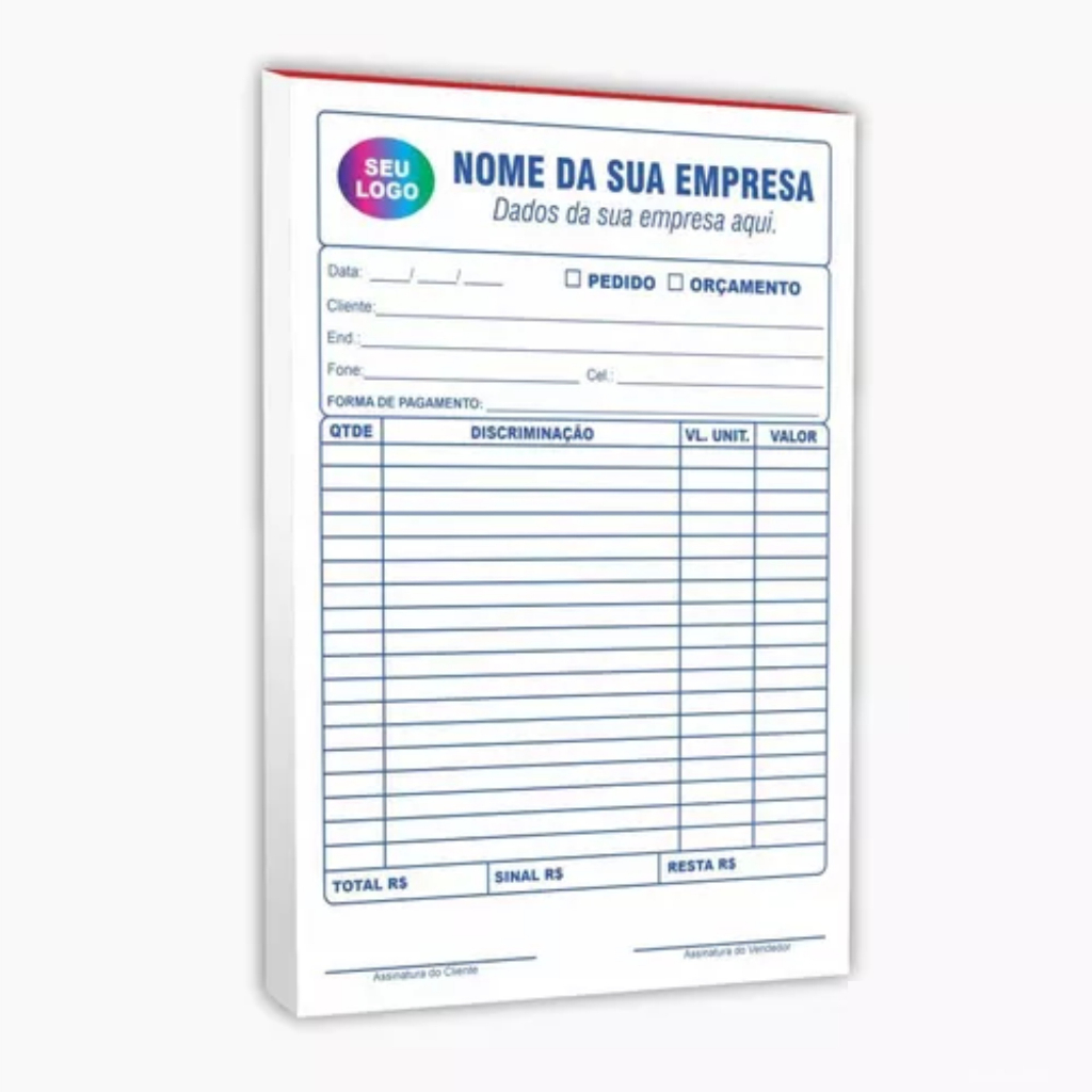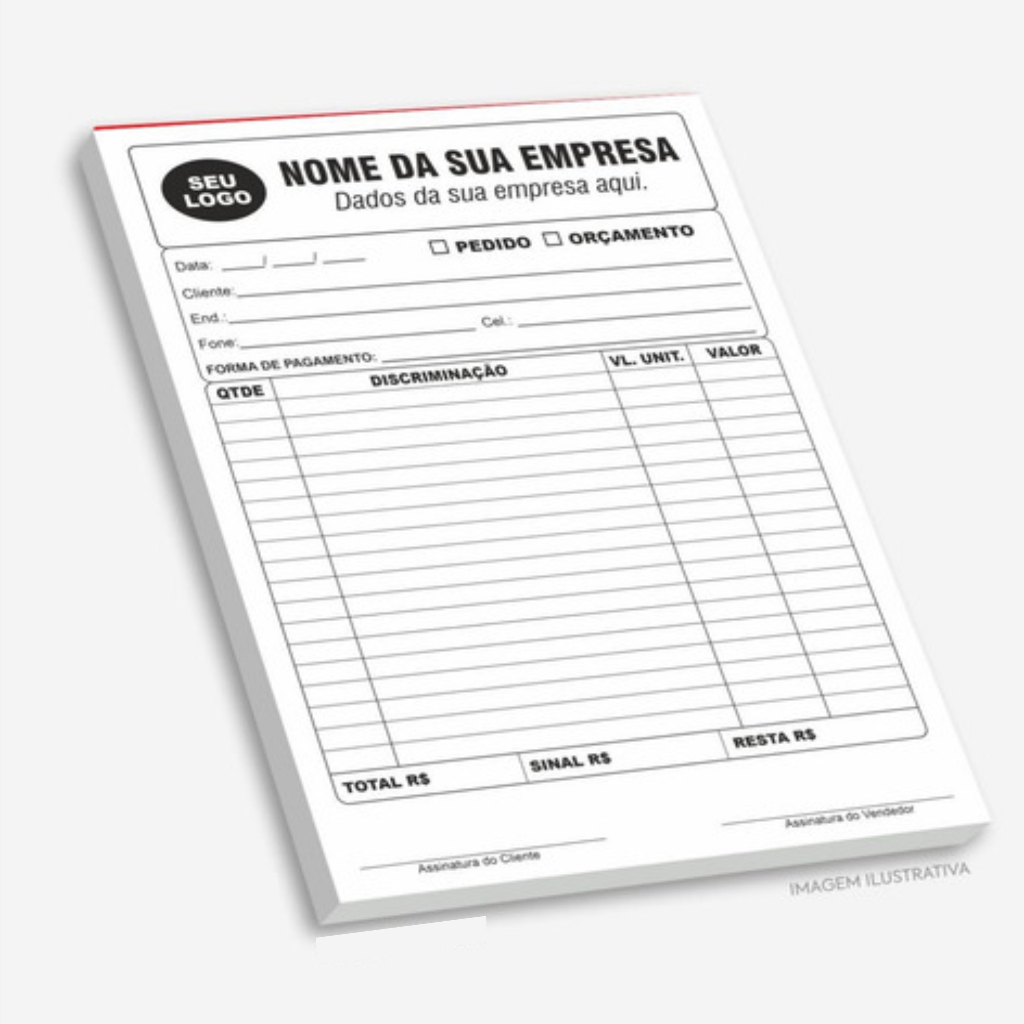 Comanda e Talão de Pedido com 1.000 Folhas Personalizadas Coladas em Blocos Comanda Restaurantes, Barzinhos, Espetinhos