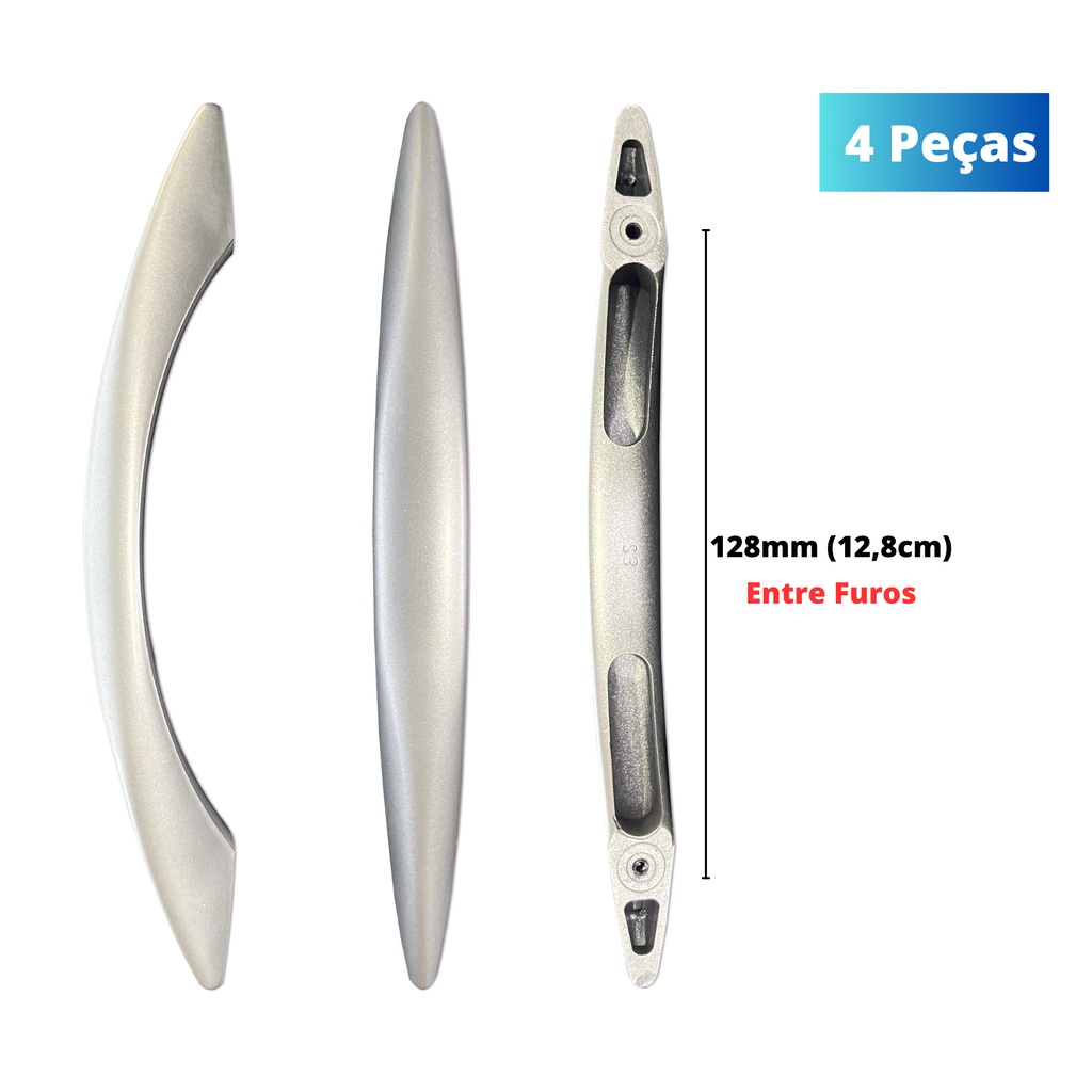 Puxador de Gavetas Portas Armários Guarda Roupas Móveis Alça Hamburgo 128mm