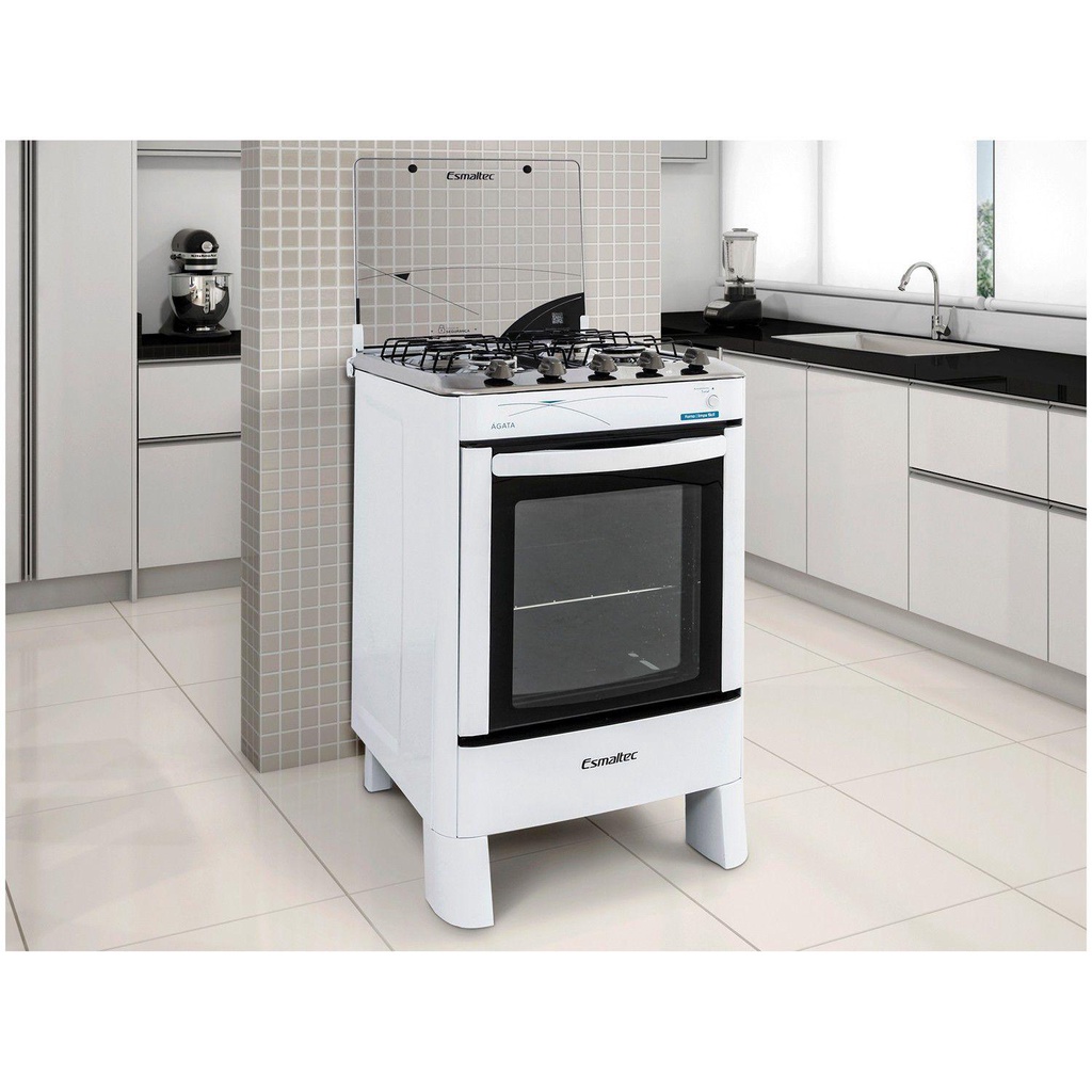 Fogão Esmaltec 4 Bocas Ágata com Mesa de Inox e Acendimento Automático Branco Bivolt