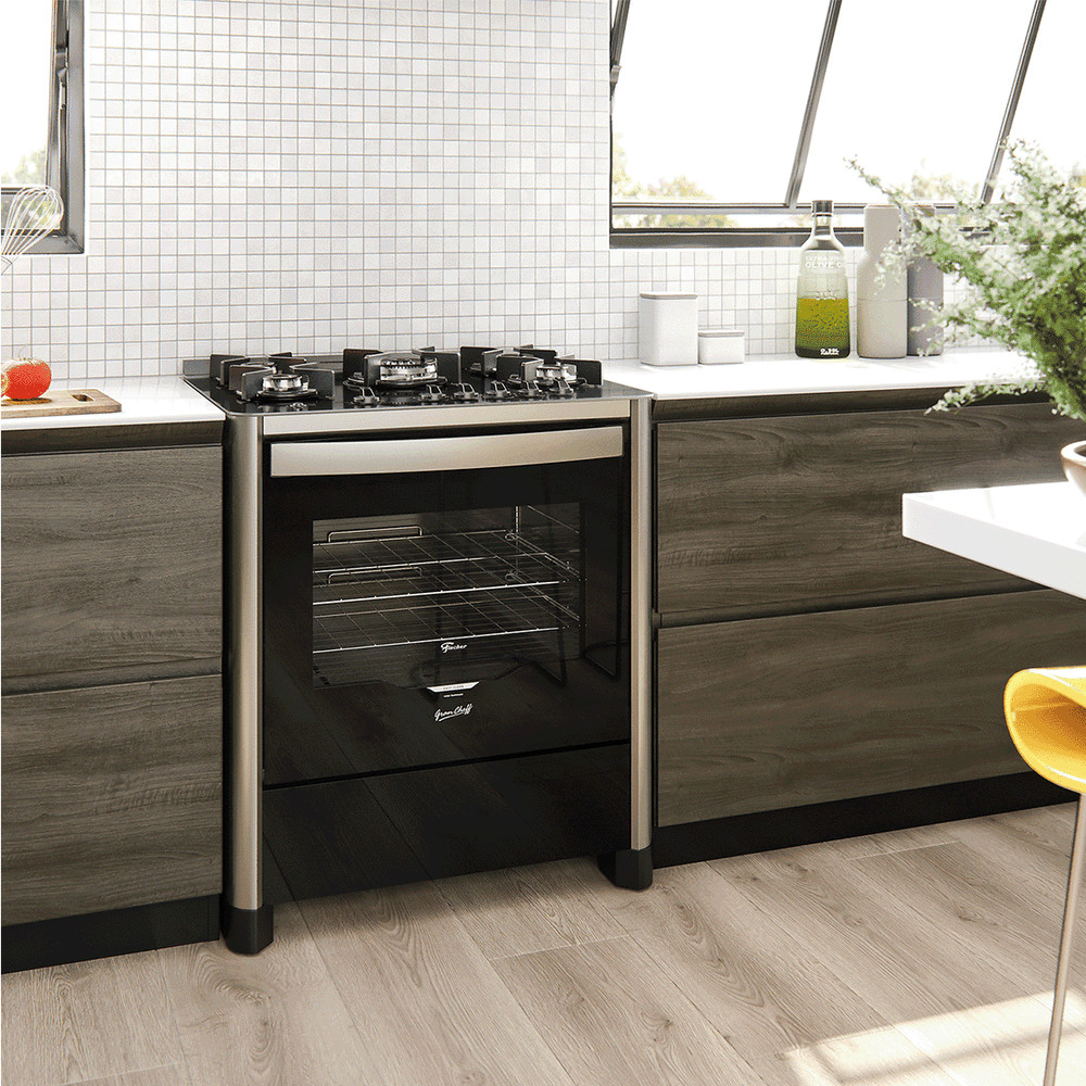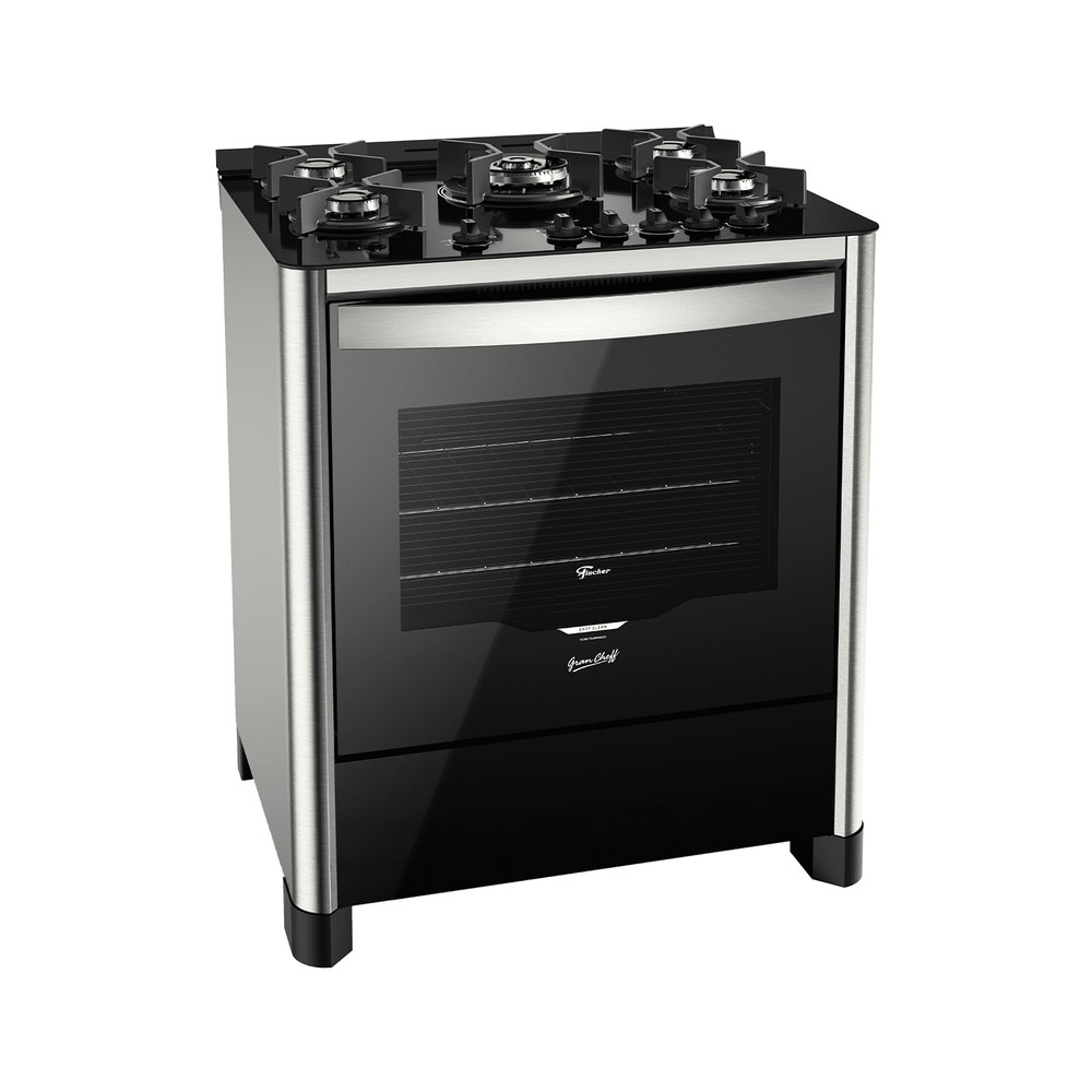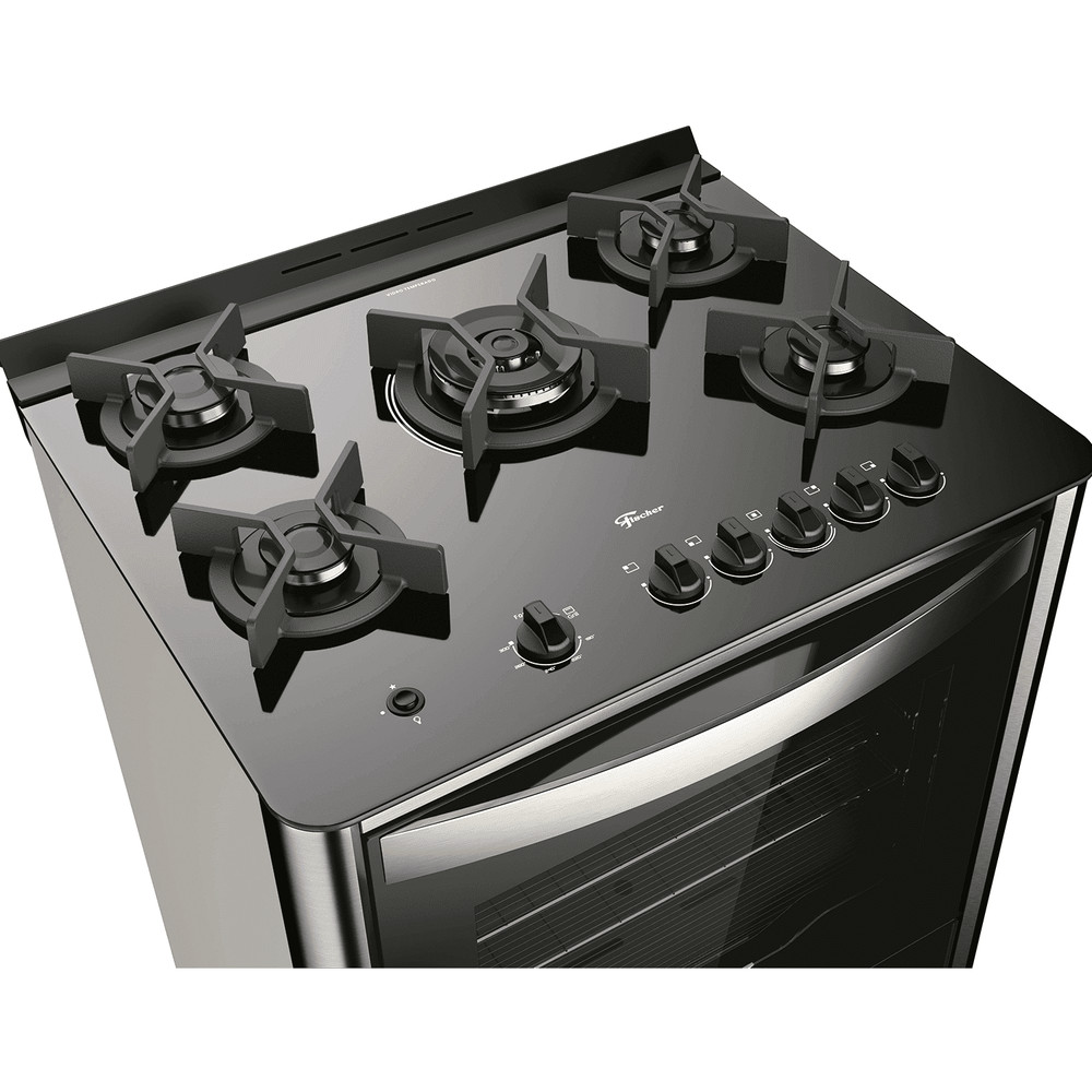 Fogão de Piso a Gás Fischer 5 Bocas Tripla Chama Gran Cheff com Mesa Vidro 26988-59780 127v