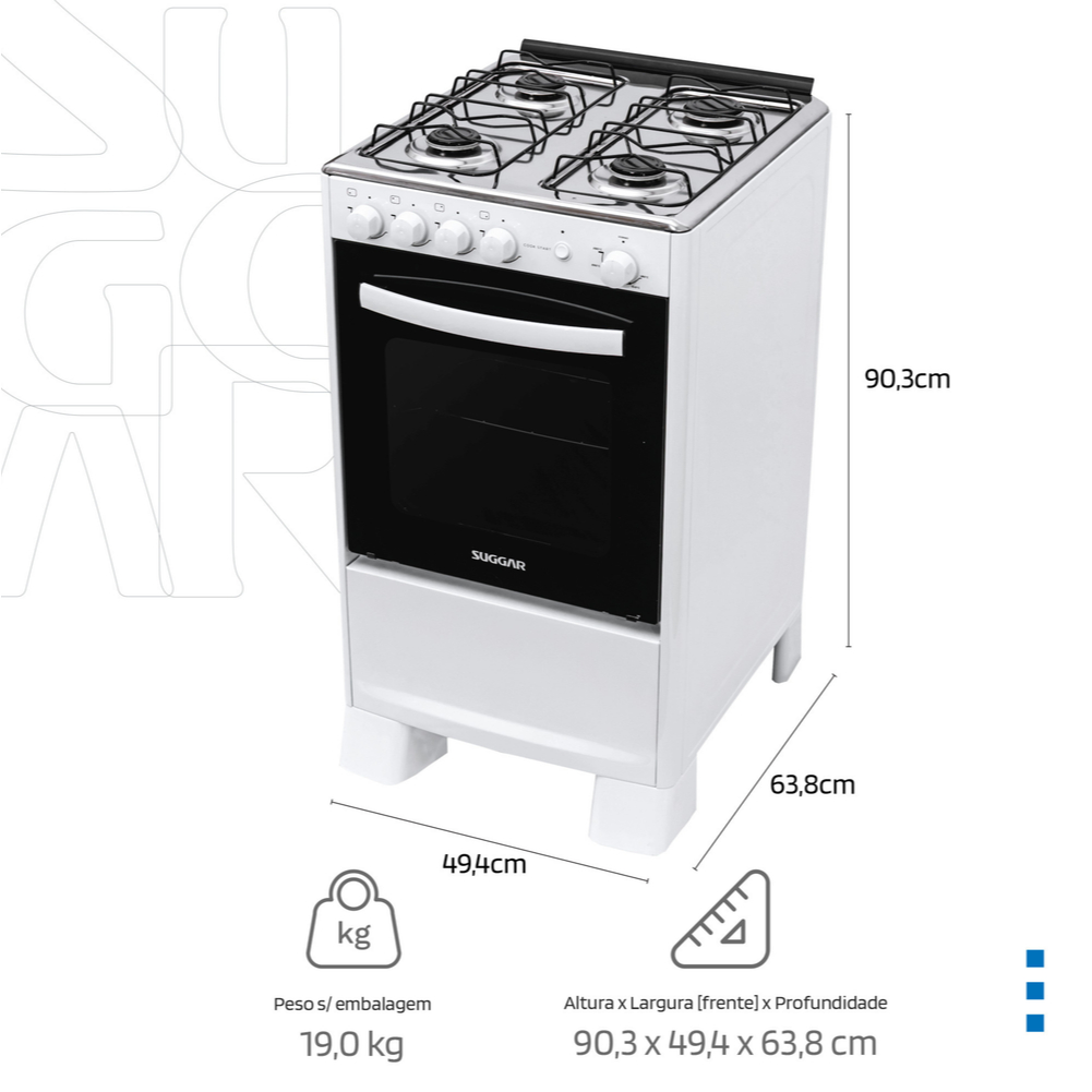 Fogão Suggar Cook Start Mesa Inox 4 Bocas Fgics420br Branco Bivolt