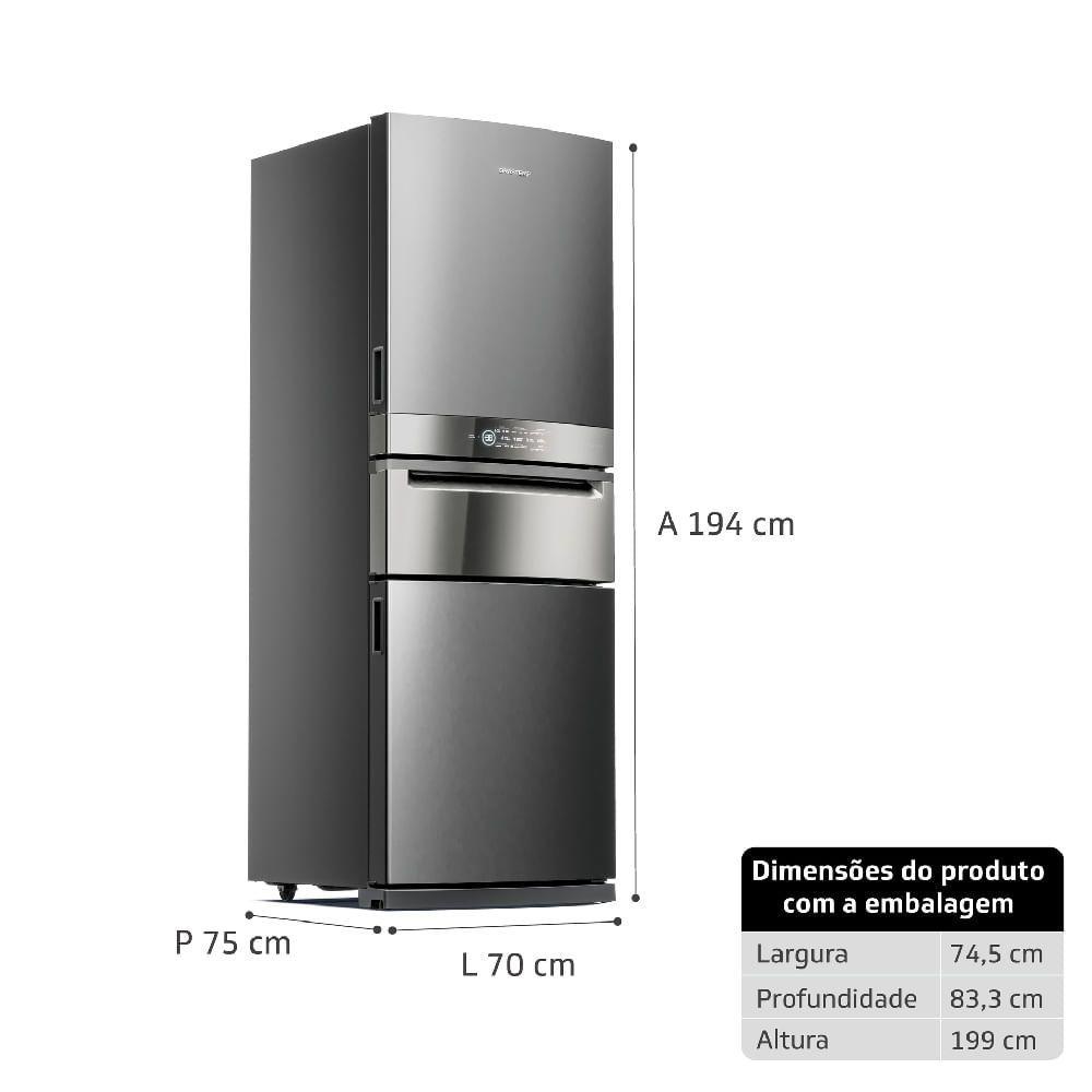 Geladeira Brastemp Inverse 3 Frost Free 419 Litros com Freeze Control Pro Bry59ck Inox