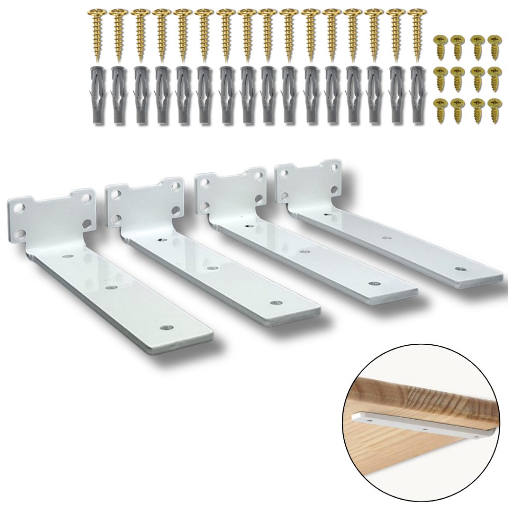Kit 4 Suportes Para Prateleira 20cm Invisível Mão Francesa Aço Reforçado Resistente Casa Cozinha Sala