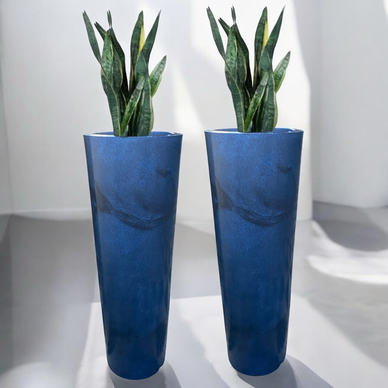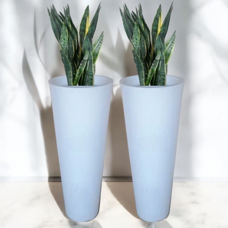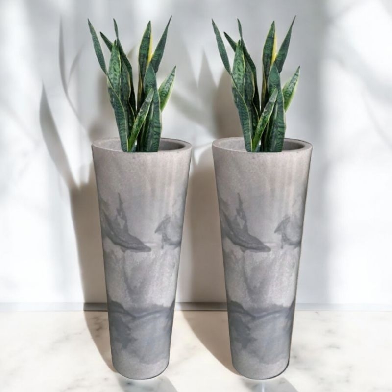 Kit 2 Vasos para Plantas 68x25 Luxo Coluna Ibiza efeito Marmorizado Decorativo Polietileno