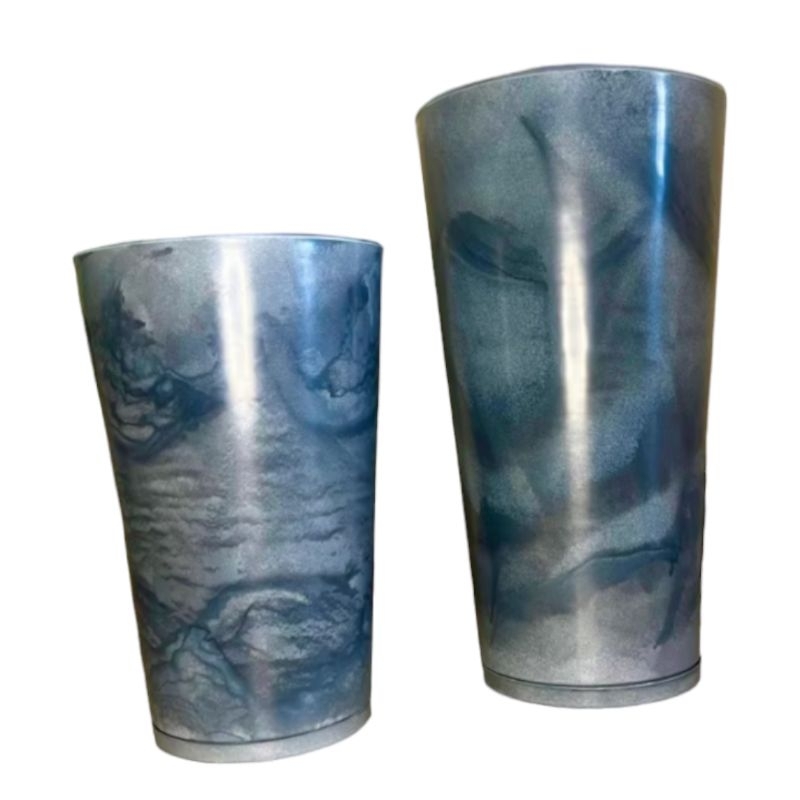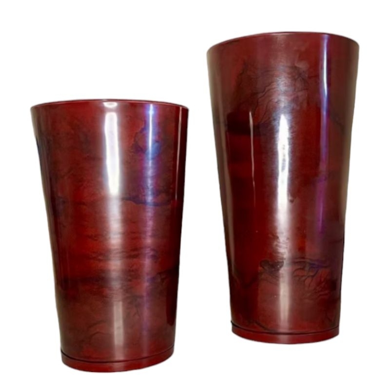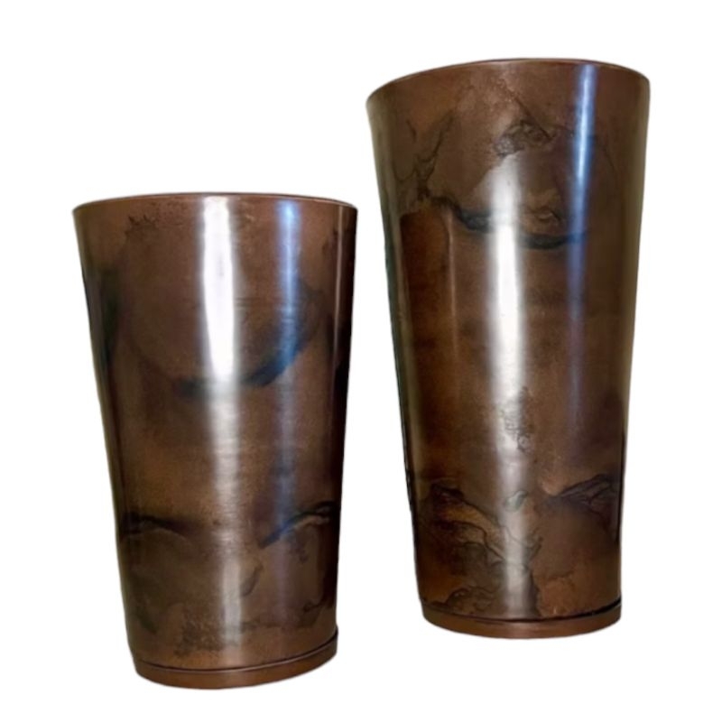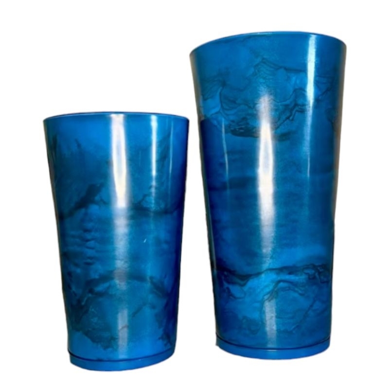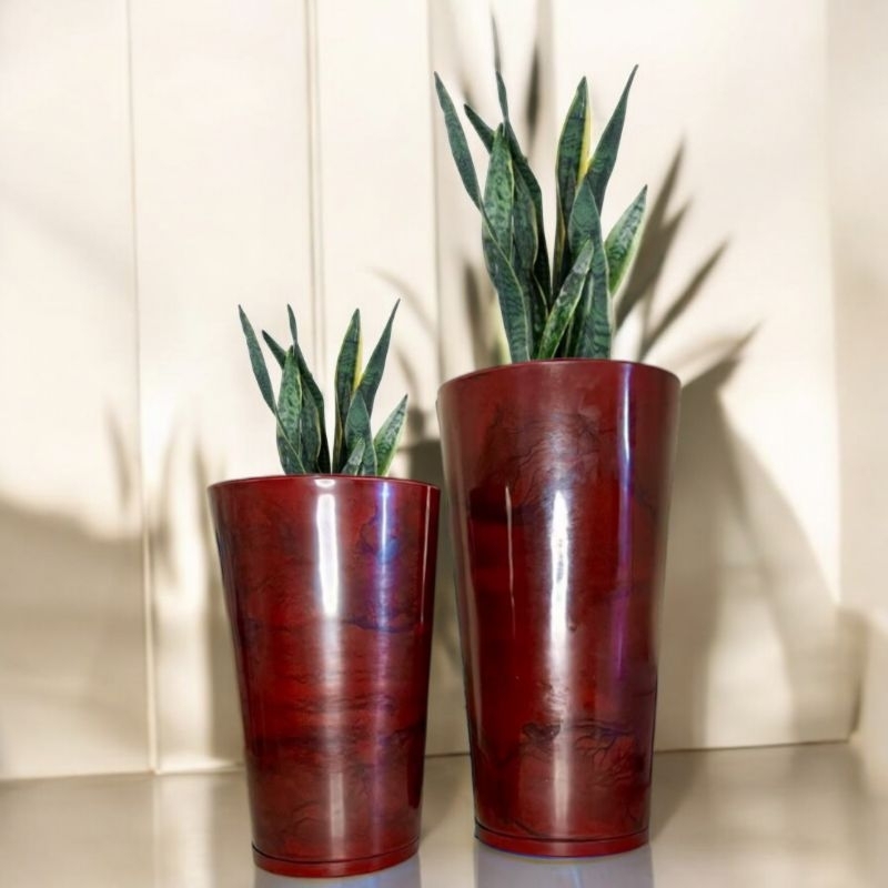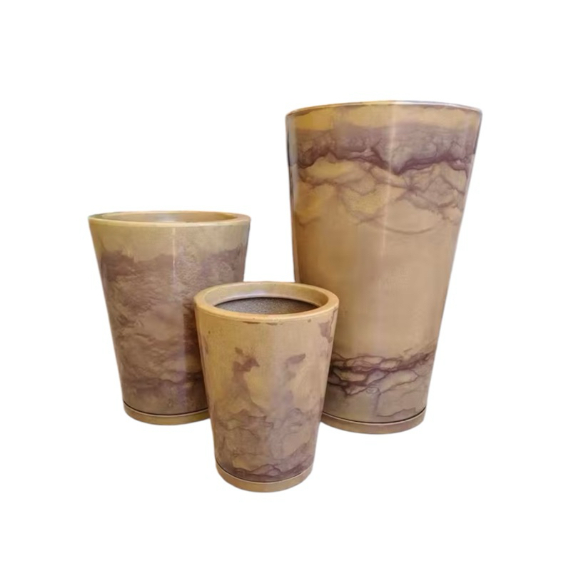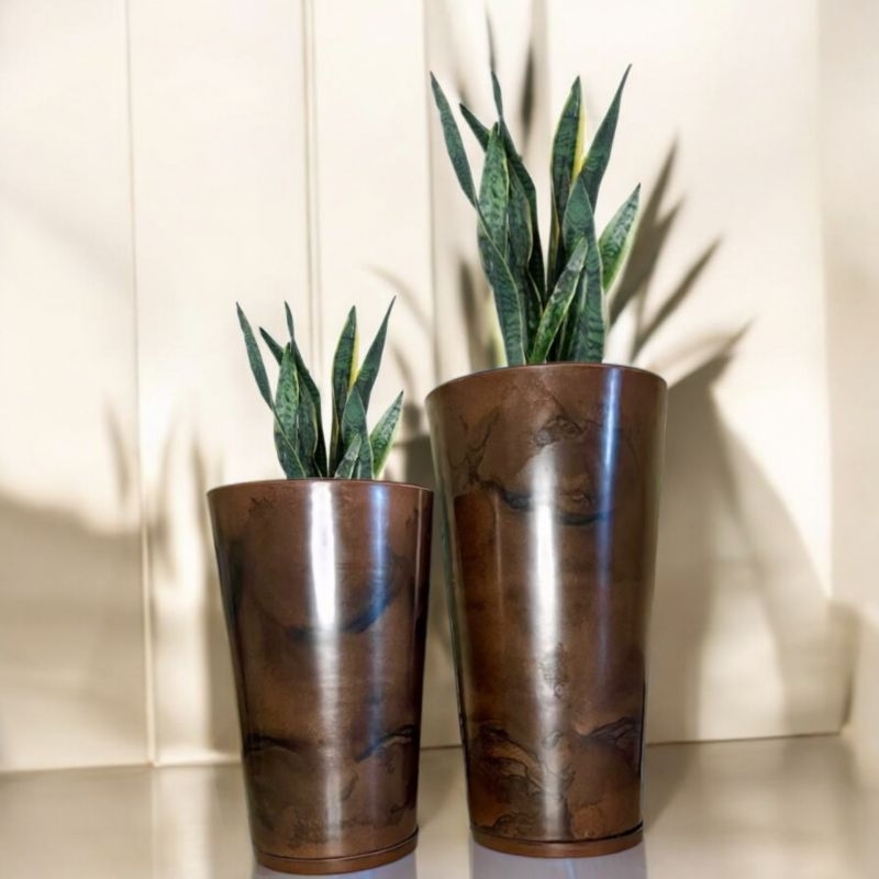 kit 2 Vasos coluna grande e médio cone polido Mármorizada com prato Premium Luxo Jardim Sala