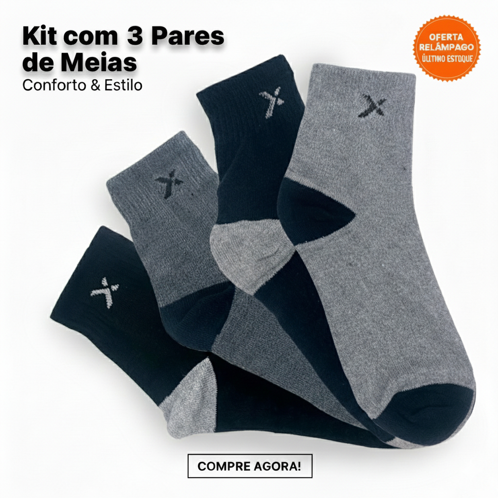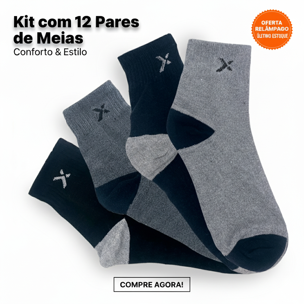 Kit Meia Cano Alto Masculina Algodão Premium Confortável Direto da Fábrica Kit 3, 6, 12 Pares
