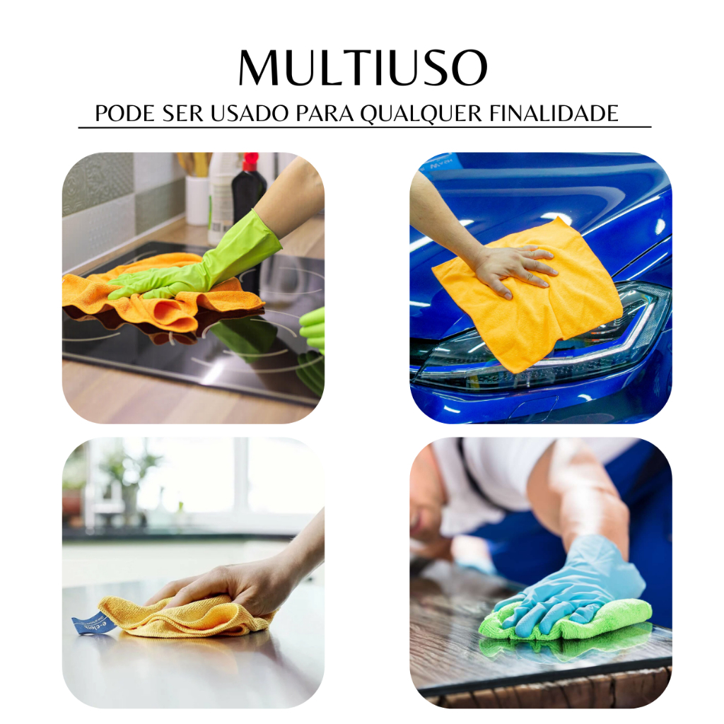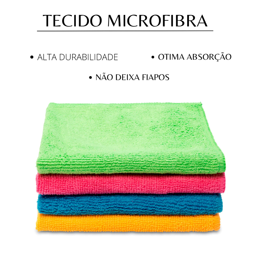 Kit de Panos Microfibra de Limpeza 28x28cm Super Absorvente Multiuso Multicolorido