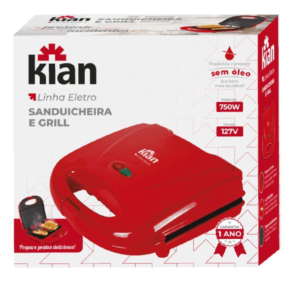Sanduicheira Grill Antiaderente 2 em 1 750W Kian Vermelha 220v