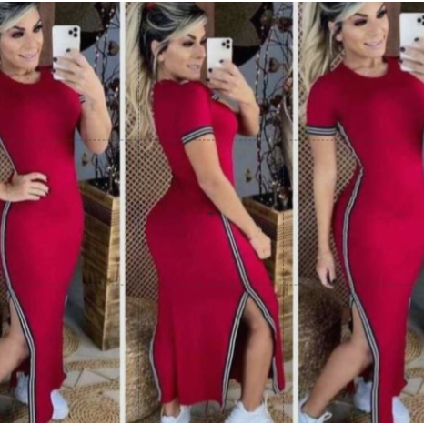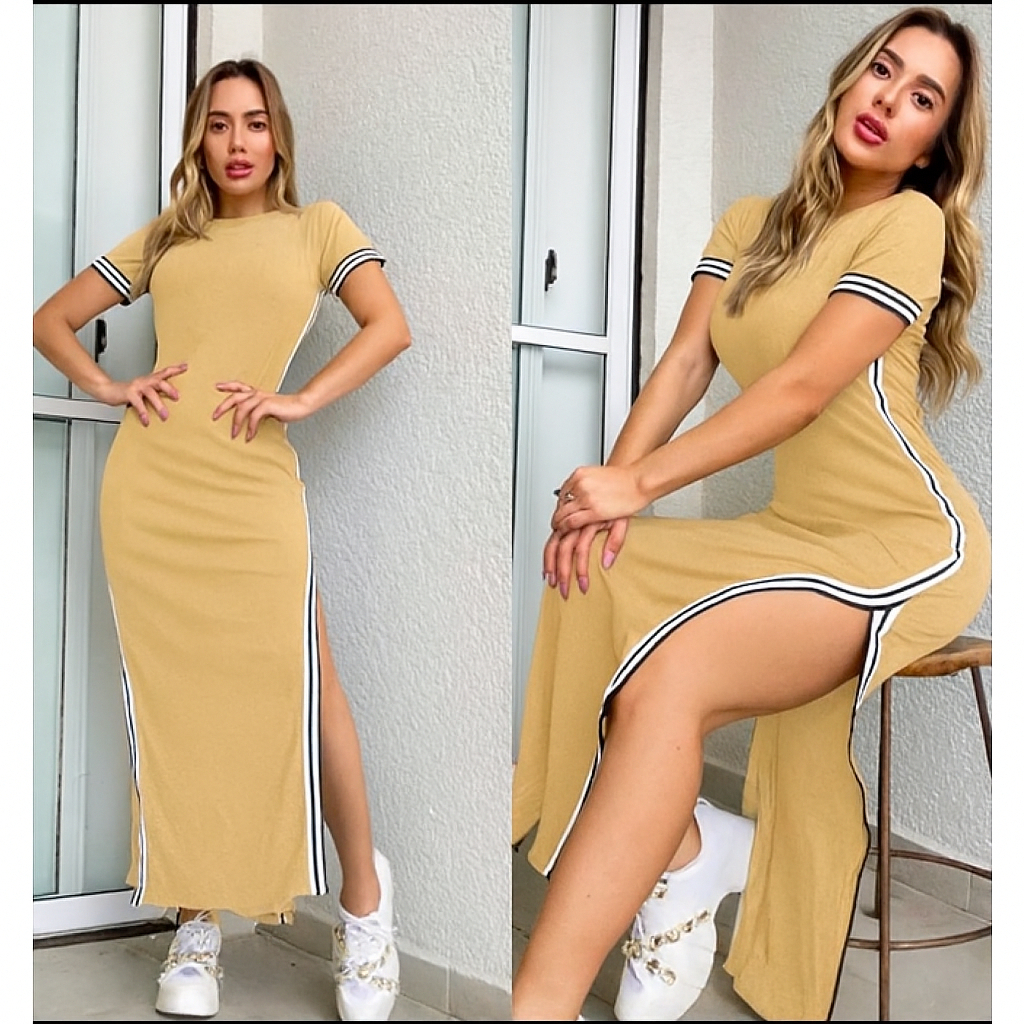 Vestido Midi Tubinho Canelado Fenda Lateral Confortável tendencia