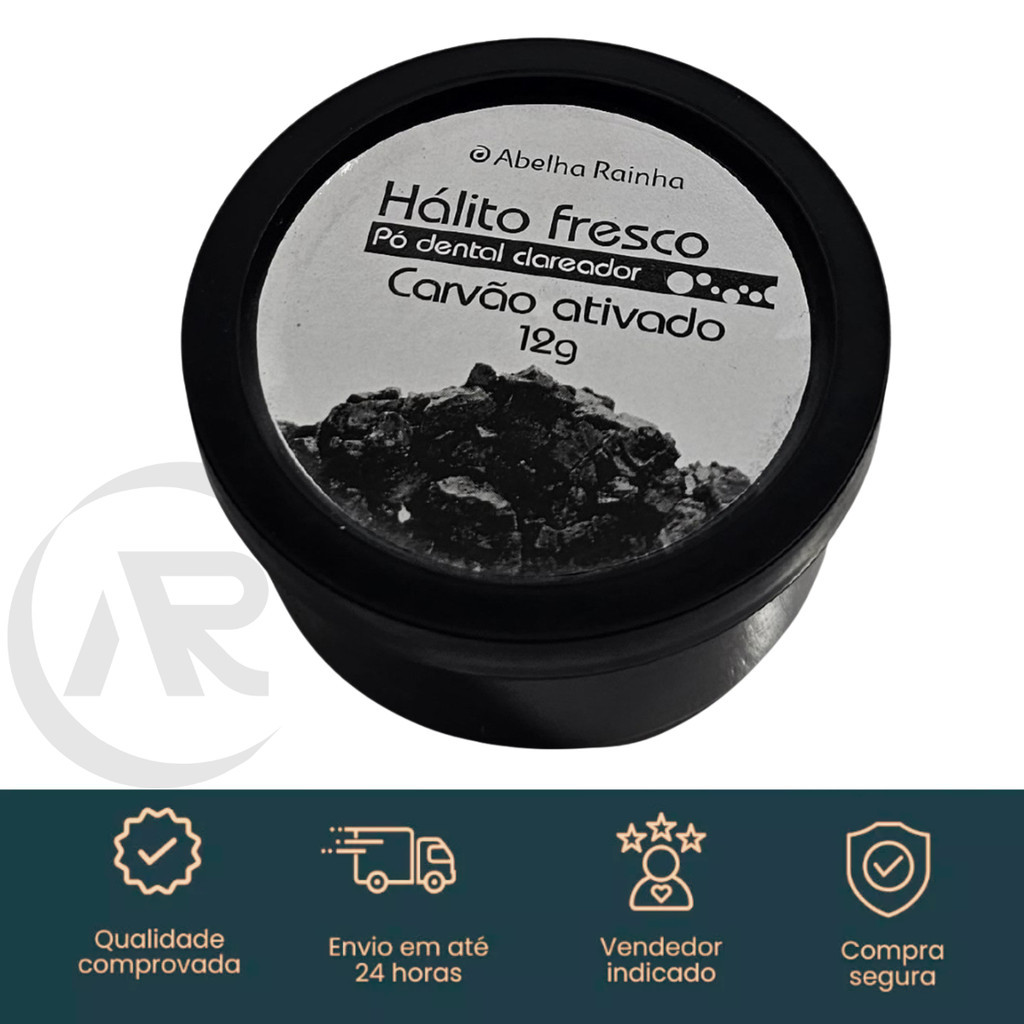 Pó Dental Branqueia os Dentes Carvão Ativado Abelha Rainha