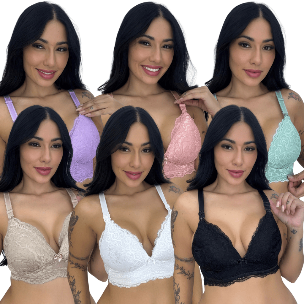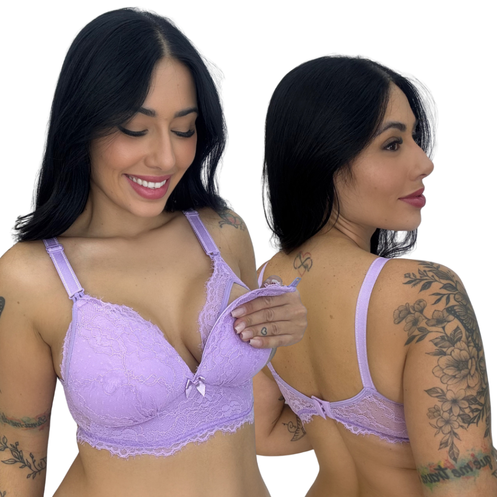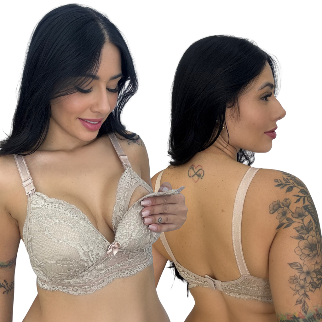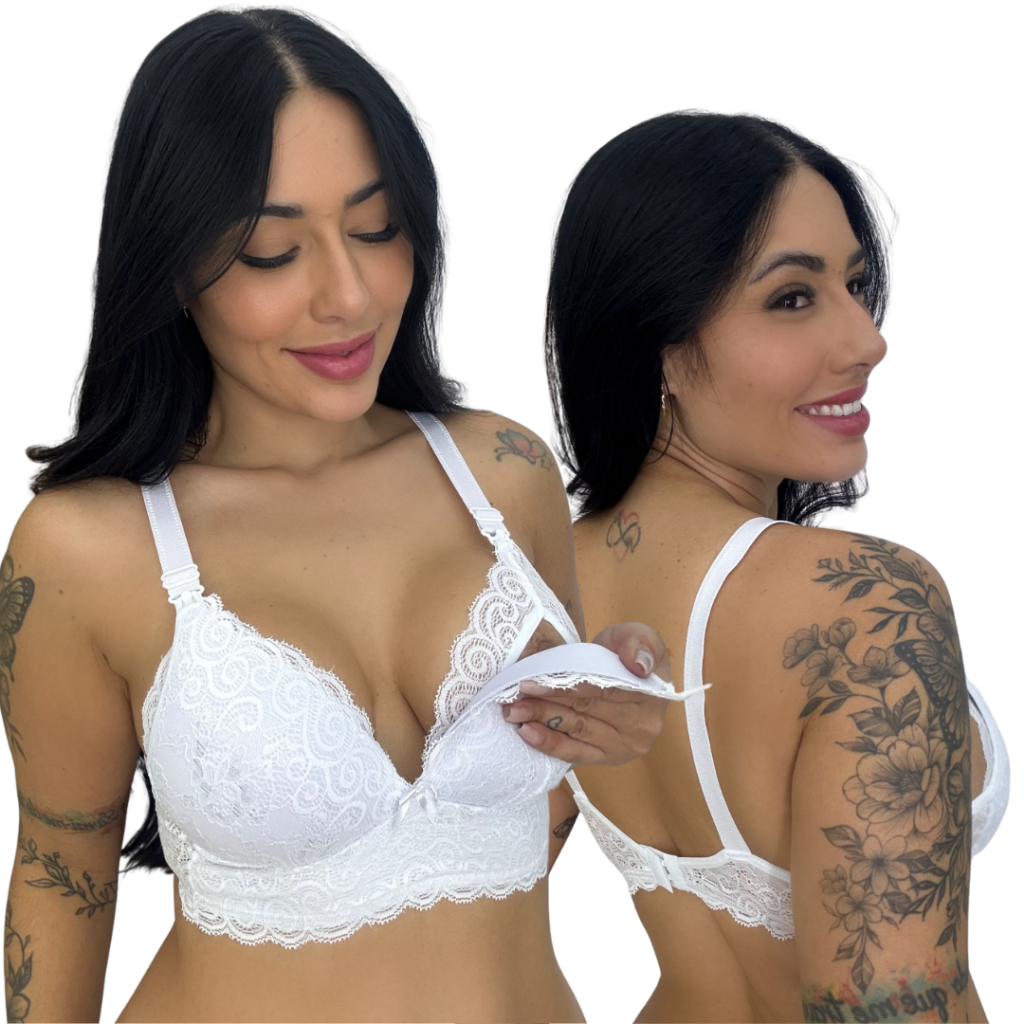 Sutiã Amamentação Com Bojo Soft Molinho Não Amassa Reforçado Fecho Largo Renda Gestante Pós Parto Gestação Amamentar
