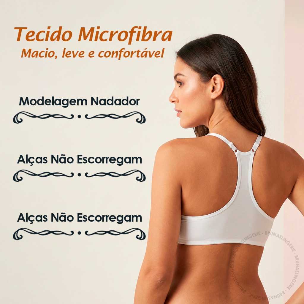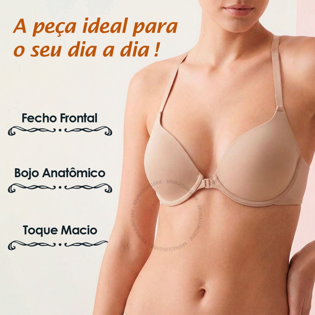 Sutiã Microfibra Modelo Nadador Lingerie Fecho Frontal Bojo Moda Íntima Feminina
